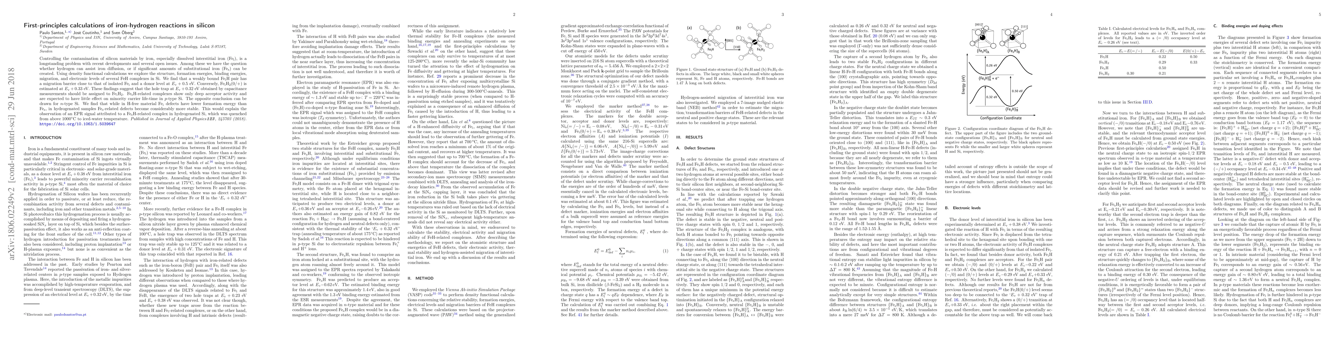 Researchers used density functional calculations to study iron-hydrogen reactions in silicon, finding that hydrogen can facilitate iron diffusion and creation of substitutional iron defects, with implications for controlling contamination in silicon materials.