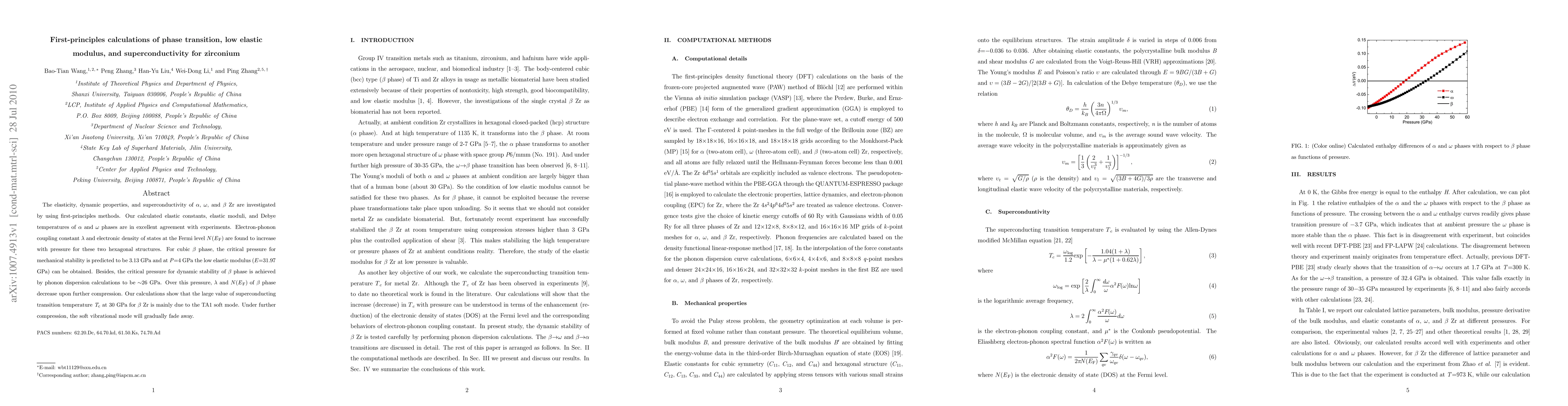 This paper investigates the elasticity, dynamic properties, and superconductivity of zirconium's $\alpha$, $\omega$, and $\beta$ phases using first-principles methods, finding that the $\beta$ phase exhibits a low elastic modulus and high superconducting transition temperature at high pressures, primarily due to the TA1 soft mode. The critical pressure for mechanical stability of $\beta$ Zr is predicted to be 3.13 GPa, and its superconducting properties are significantly influenced by pressure-induced changes in electron-phonon coupling and electronic density of states.