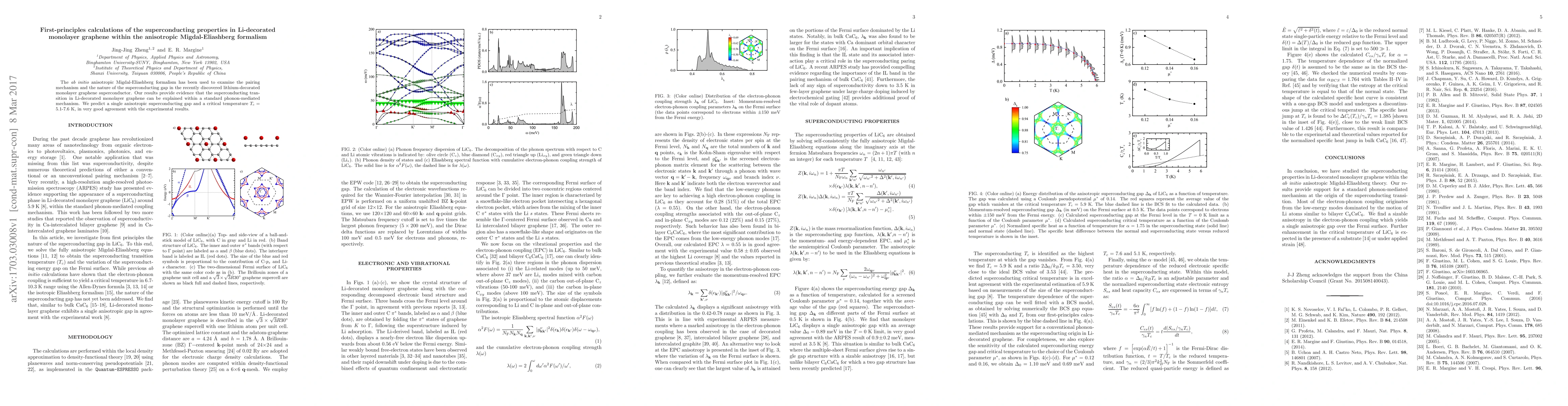 This study employs the ab initio anisotropic Migdal-Eliashberg formalism to investigate the superconducting properties of lithium-decorated monolayer graphene, revealing a phonon-mediated pairing mechanism and predicting an anisotropic superconducting gap with a critical temperature (Tc) of 5.1-7.6 K, closely matching experimental observations.