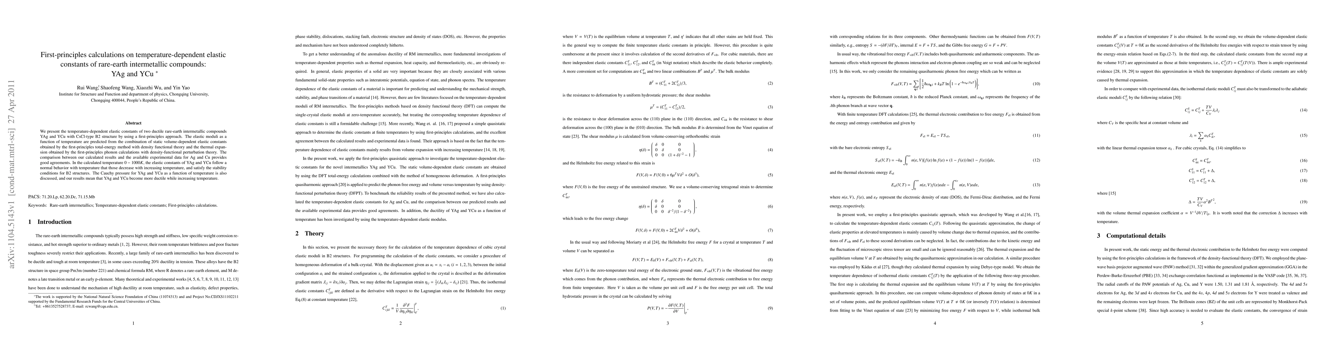 This study uses first-principles calculations to predict the temperature-dependent elastic constants of rare-earth intermetallic compounds YAg and YCu, showing a decrease in elastic constants with rising temperature and increased ductility. The results align well with available experimental data and confirm the stability conditions for their B2 structure.