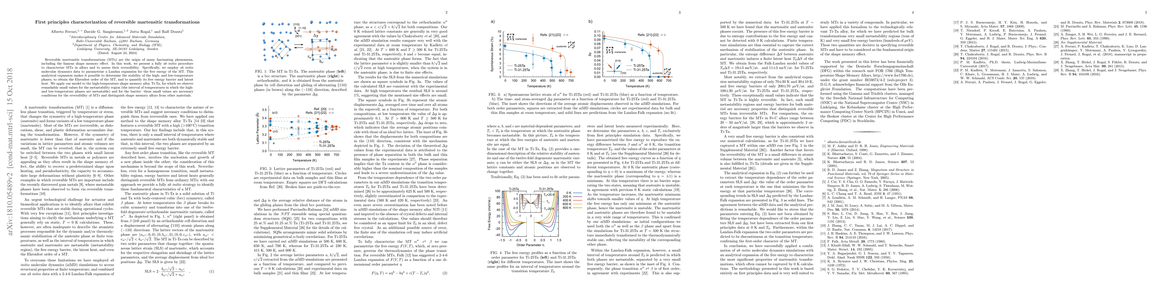 This paper presents an ab initio method to characterize reversible martensitic transformations in alloys, using Ti-Ta as a case study. The method employs molecular dynamics data to parametrize a Landau expansion, enabling the determination of phase stability, transformation order, and quantitative measures of transformation barriers and latent heat.