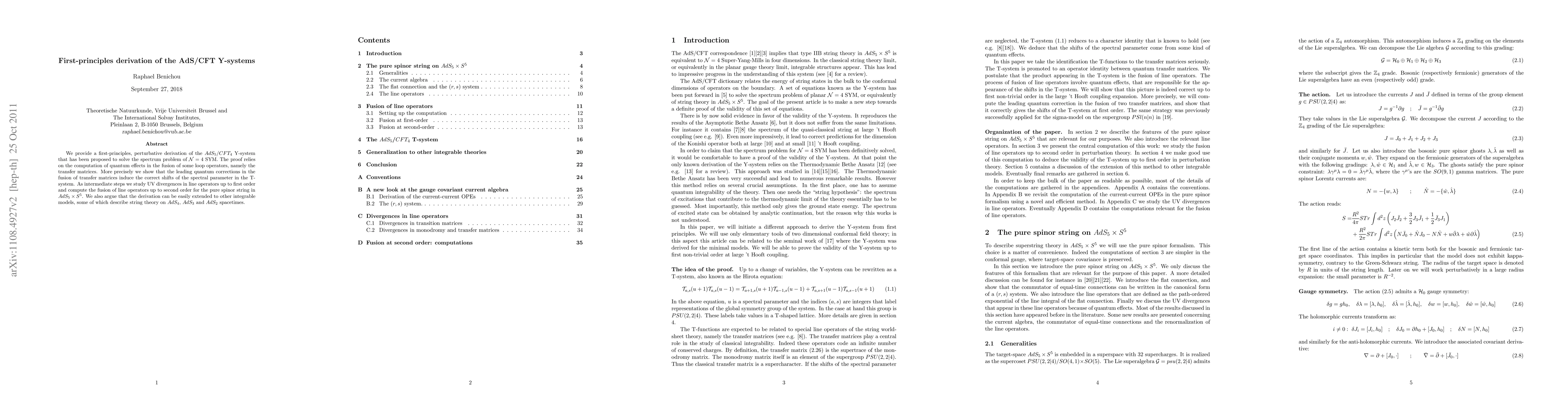 We provide a first-principles, perturbative derivation of the AdS5/CFT4 Y-system that has been proposed to solve the spectrum problem of N=4 SYM. The proof relies on the computation of quantum effects in the fusion of some loop operators, namely the transfer matrices. More precisely we show that the leading quantum corrections in the fusion of transfer matrices induce the correct shifts of the spectral parameter in the T-system. As intermediate steps we study UV divergences in line operators up to first order and compute the fusion of line operators up to second order for the pure spinor string in AdS5xS5. We also argue that the derivation can be easily extended to other integrable models, some of which describe string theory on AdS4, AdS3 and AdS2 spacetimes.