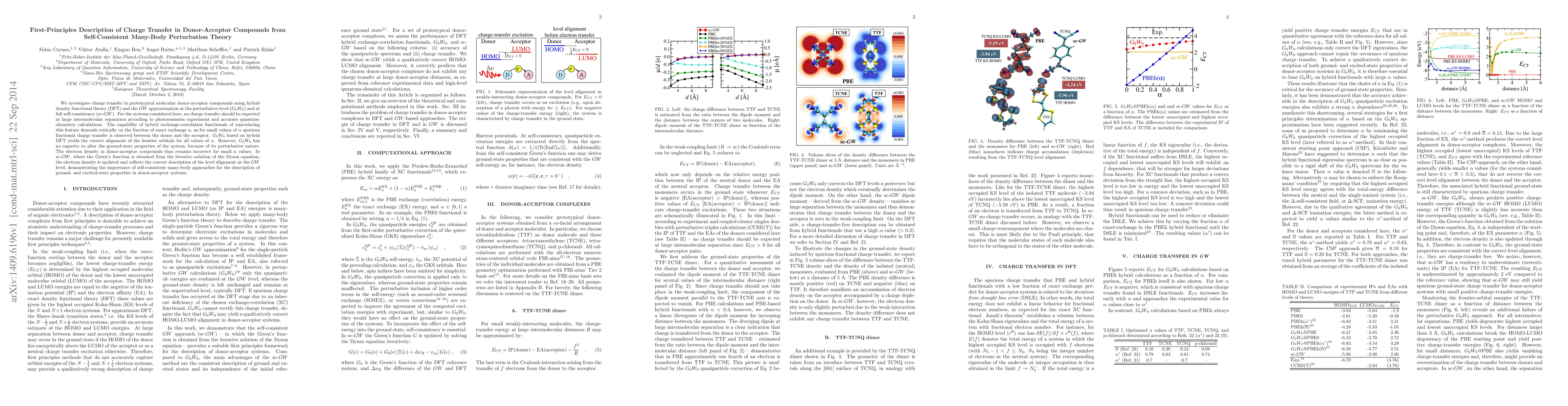 The research employs hybrid density functional theory (DFT) and the GW approximation (G0W0 and sc-GW) to investigate charge transfer in donor-acceptor compounds.
