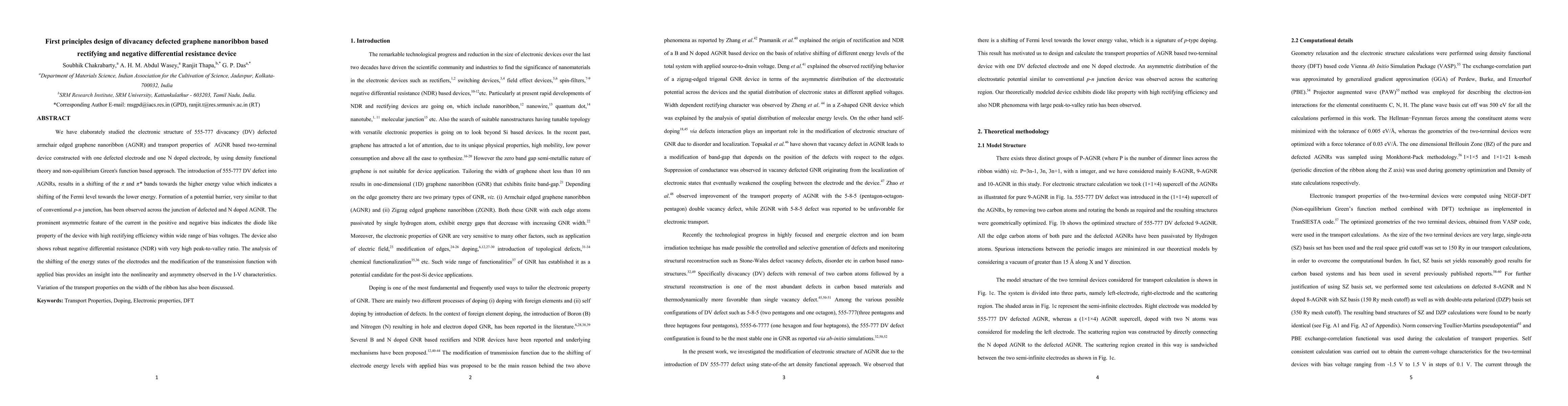 Researchers designed a graphene nanoribbon device with a divacancy defect that can rectify and exhibit negative differential resistance, showing promise for new electronic applications.