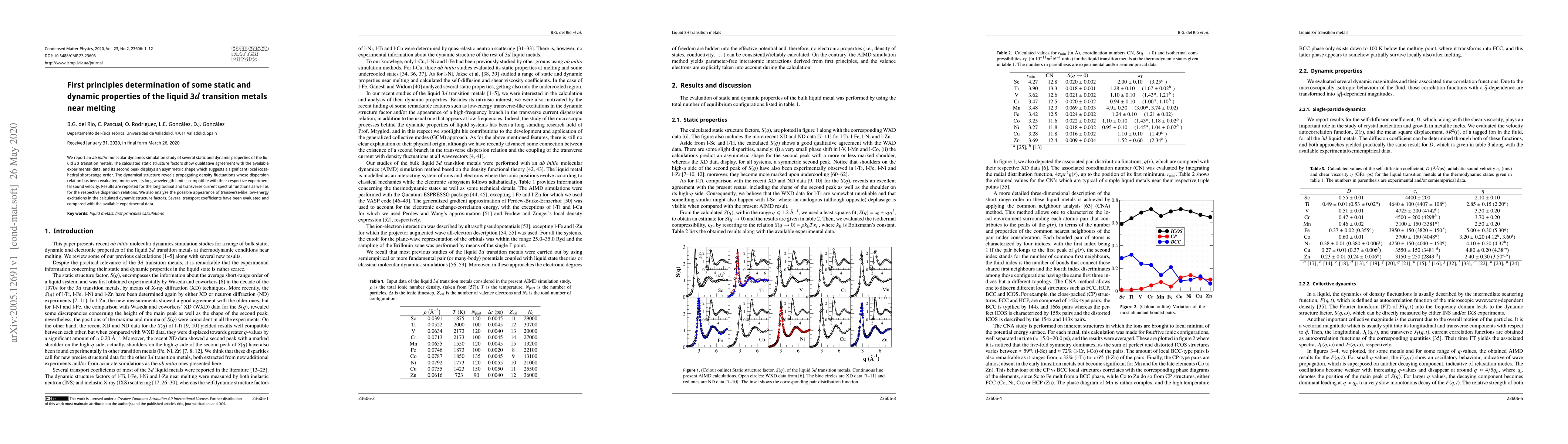 This study uses ab initio molecular dynamics to determine static and dynamic properties of liquid 3d transition metals near melting. The simulation shows qualitative agreement with experimental data, indicating significant local icosahedral order and compatible sound velocity, alongside evaluated transport coefficients for comparison.