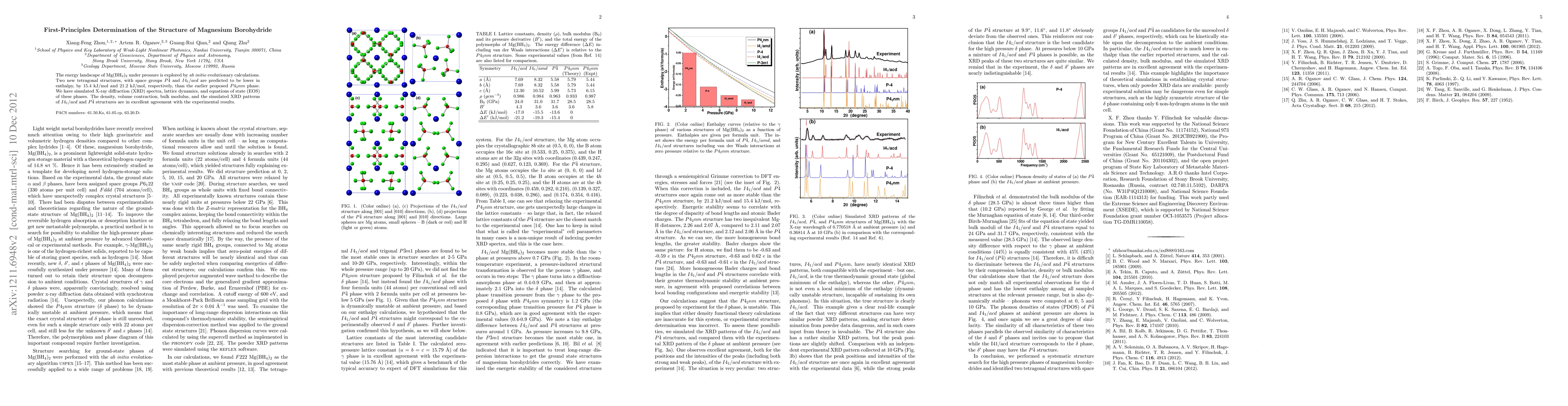 The energy landscape of Mg(BH4)2 under pressure is explored by ab initio evolutionary calculations. Two new tetragonal structures, with space groups P-4 and I41/acd are predicted to be lower in enthalpy, by 15.4 kJ/mol and 21.2 kJ/mol, respectively, than the earlier proposed P42nm phase. We have simulated X-ray diffraction (XRD) spectra, lattice dynamics, and equations of state (EOS) of these phases. The density, volume contraction, bulk modulus, and the simulated XRD patterns of I41/acd and P-4 structures are in excellent agreement with the experimental results.