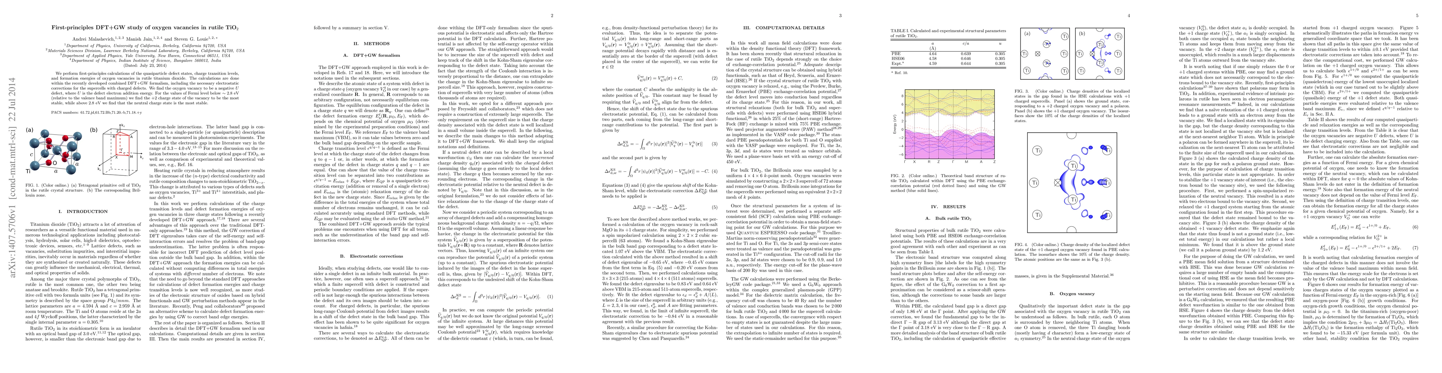 This study employs DFT+GW calculations to investigate oxygen vacancies in rutile TiO₂, revealing the vacancy as a negative U defect. It finds that the +2 charge state is stable when the Fermi level is below 2.8 eV, while the neutral state becomes stable above this energy level.