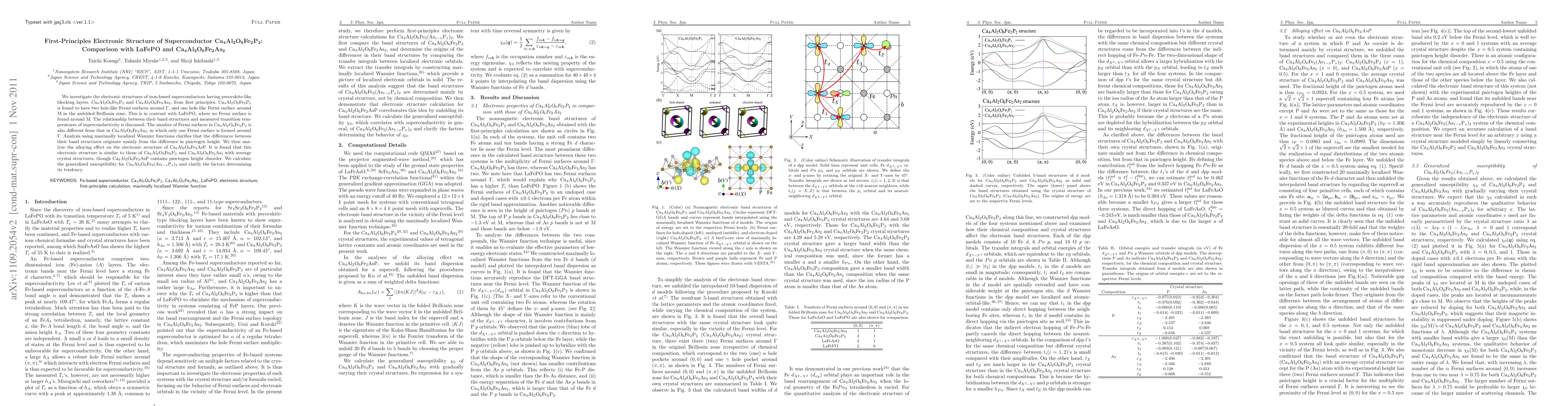 We investigate the electronic structures of iron-based superconductors having perovskite-like blocking layers, %Ca$_4$Al$_2$O$_6$Fe$_2$(As$_{1-x}$P$_x$)$_2$ from first principles. Ca$_4$Al$_2$O$_6$Fe$_2$P$_2$ and Ca$_4$Al$_2$O$_6$Fe$_2$As$_2$ from first principles. Ca$_4$Al$_2$O$_6$Fe$_2$P$_2$ is found to have two hole-like Fermi surfaces around $\Gamma$, and one hole-like Fermi surface around M in the unfolded Brillouin zone. This is in contrast with LaFePO, where no Fermi surface is found around M. The relationship of their band structures and measured transition temperatures of superconductivity is discussed. The number of Fermi surfaces in Ca$_4$Al$_2$O$_6$Fe$_2$P$_2$ is also different from that of Ca$_4$Al$_2$O$_6$Fe$_2$As$_2$, in which only one Fermi surface is formed around $\Gamma$. Analysis using maximally localized Wannier functions clarifies that the differences between their band structures originate mainly from the pnictogen height. We then analyze the alloying effect on the electronic structure of Ca$_4$Al$_2$O$_6$Fe$_2$AsP. It is found that its electronic structure is similar to that of Ca$_4$Al$_2$O$_6$Fe$_2$P$_2$ and Ca$_4$Al$_2$O$_6$Fe$_2$As$_2$ with the average crystal structure, though Ca$_4$Al$_2$O$_6$Fe$_2$AsP contains the pnictogen height disorder. We calculate the generalized susceptibility for Ca$_4$Al$_2$O$_6$Fe$_2$(As$_{1-x}$P$_x$)$_2$ and clarify the factors determining its tendency.