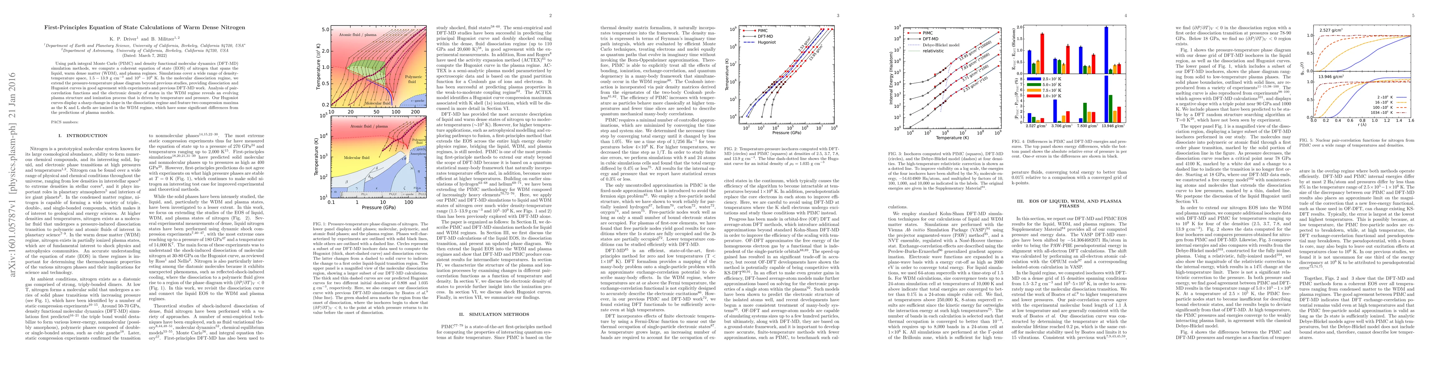 This paper uses advanced simulation methods to calculate the equation of state for nitrogen across liquid, warm dense matter, and plasma states, revealing significant ionization and structural changes driven by temperature and pressure, and providing Hugoniot curves that differ from traditional plasma model predictions.