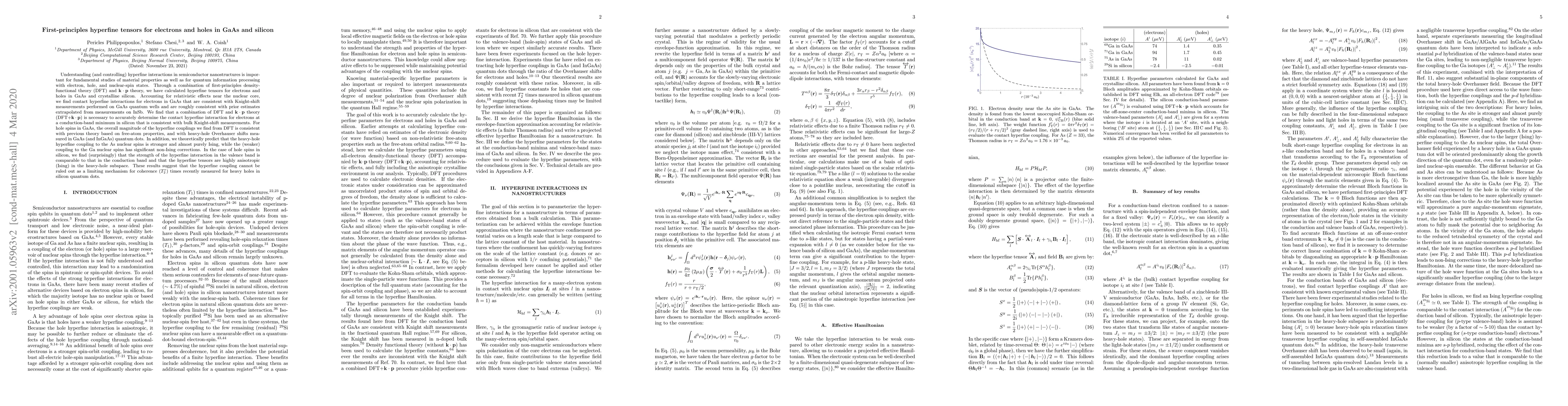 This paper calculates hyperfine tensors for electrons and holes in GaAs and silicon using first-principles density-functional theory and $\mathbf{k}\cdot\mathbf{p}$ theory, revealing important insights into hyperfine interactions crucial for quantum information processing and material properties. The study finds strong hyperfine couplings in GaAs, especially for heavy holes, and surprisingly strong and anisotropic hyperfine interactions in silicon's valence band.
