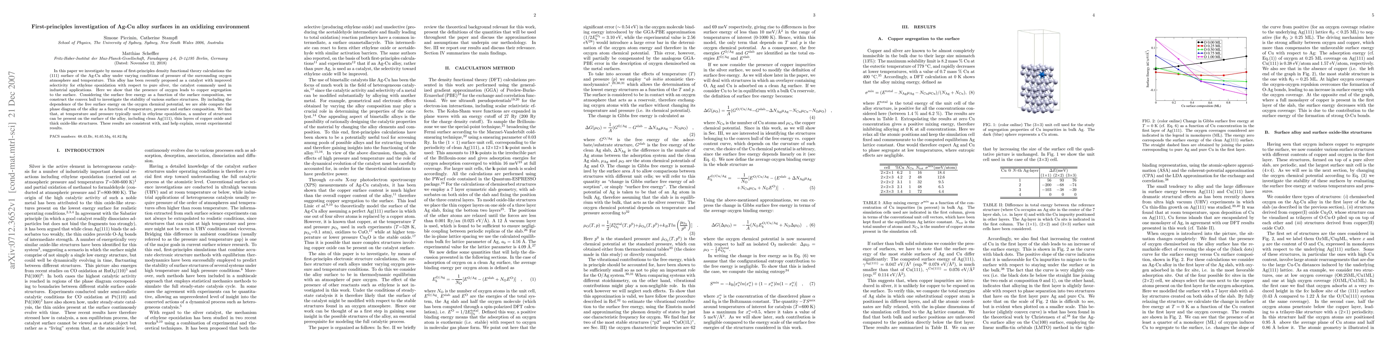 This study uses first-principles density functional theory to analyze the (111) surface of Ag-Cu alloy under varying oxygen and temperature conditions, revealing copper segregation to the surface in the presence of oxygen. The phase diagram shows multiple stable surface structures relevant to ethylene epoxidation catalysis.