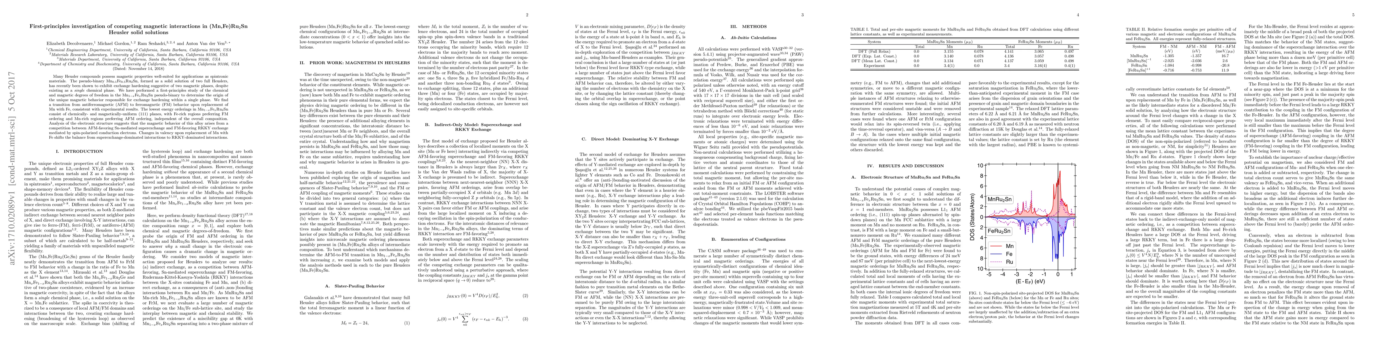 Many Heusler compounds possess magnetic properties well-suited for applications as spintronic materials. The pseudo-binary Mn$_{0.5}$Fe$_{0.5}$Ru$_2$Sn, formed as a solid solution of two full Heuslers, has recently been shown to exhibit exchange hardening suggestive of two magnetic phases, despite existing as a \textit{single} chemical phase. We have performed a first-principles study of the chemical and magnetic degrees of freedom in the Mn$_{1-x}$Fe$_{x}$Ru$_2$Sn pseudo-binary to determine the origin of the unique magnetic behavior responsible for exchange hardening within a single phase. We find a transition from antiferromagnetic (AFM) to ferromagnetic (FM) behavior upon replacement of Mn with Fe, consistent with experimental results. The lowest energy orderings in Mn$_{1-x}$Fe$_{x}$Ru$_2$Sn consist of chemically- and magnetically-uniform (111) planes, with Fe-rich regions preferring FM ordering and Mn-rich regions preferring AFM ordering, independent of the overall composition. Analysis of the electronic structure suggests that the magnetic behavior of this alloy arises from a competition between AFM-favoring Sn-mediated superexchange and FM-favoring RKKY exchange mediated by spin-polarized conduction electrons. Changes in valency upon replacement of Mn with Fe shifts the balance from superexchange-dominated interactions to RKKY-dominated interactions.
