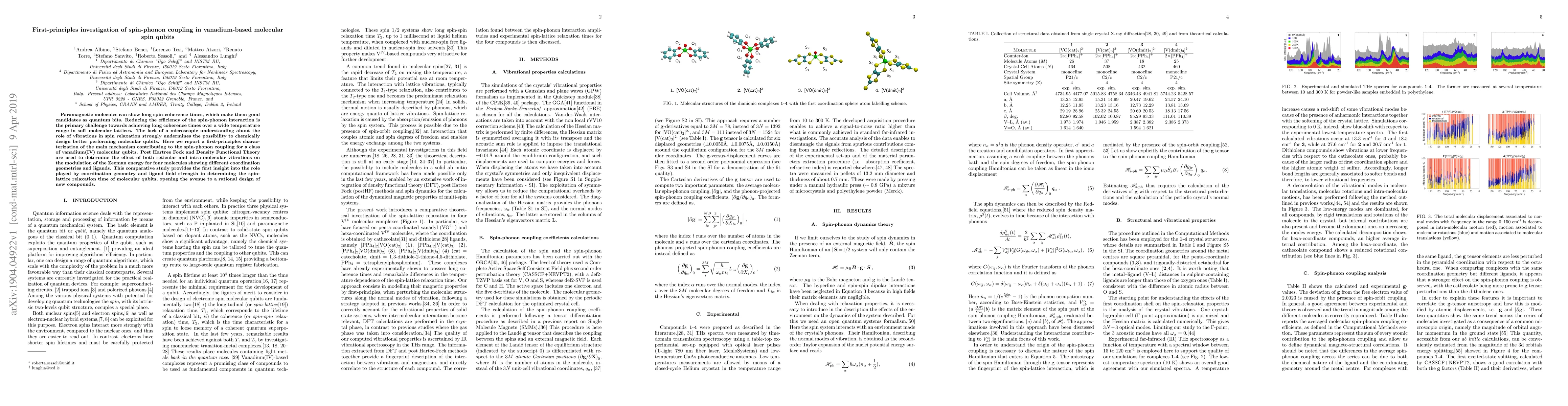 Paramagnetic molecules can show long spin-coherence times, which make them good candidates as quantum bits. Reducing the efficiency of the spin-phonon interaction is the primary challenge towards achieving long coherence times over a wide temperature range in soft molecular lattices. The lack of a microscopic understanding about the role of vibrations in spin relaxation strongly undermines the possibility to chemically design better performing molecular qubits. Here we report a first-principles characterization of the main mechanism contributing to the spin-phonon coupling for a class of vanadium(IV) molecular qubits. Post Hartree Fock and Density Functional Theory are used to determine the effect of both reticular and intra-molecular vibrations on the modulation of the Zeeman energy for four molecules showing different coordination geometries and ligands. This comparative study provides the first insight into the role played by coordination geometry and ligand field strength in determining the spin-lattice relaxation time of molecular qubits, opening the avenue to a rational design of new compounds.