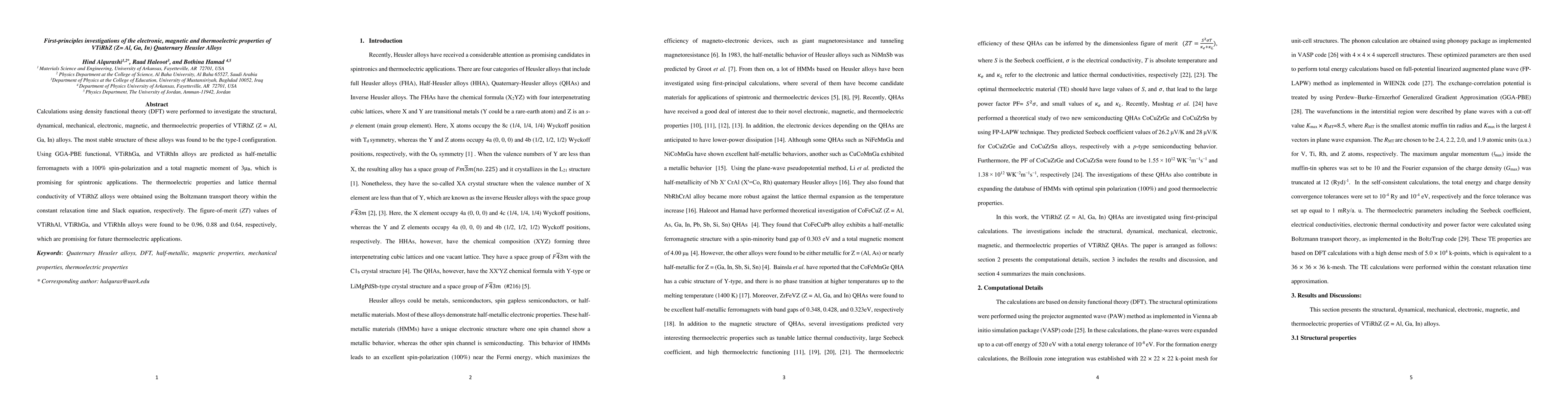 This paper investigates the electronic, magnetic, and thermoelectric properties of VTiRhZ (Z=Al, Ga, In) quaternary Heusler alloys using DFT calculations. The alloys show half-metallic ferromagnetism and promising thermoelectric performance with ZT values of 0.96, 0.88, and 0.64, respectively, indicating potential for spintronic and thermoelectric applications.