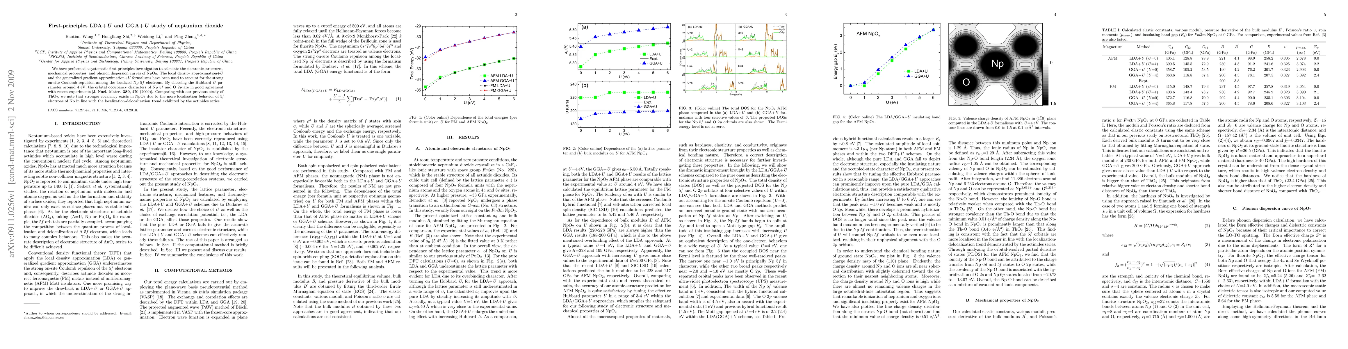 This study investigates the electronic structures and mechanical properties of neptunium dioxide (NpO₂) using LDA+U and GGA+U methods, finding strong covalency and better agreement with experiments when U is around 4 eV. The research highlights stronger localization of Np 5f electrons compared to ThO₂, aligning with actinide series trends.