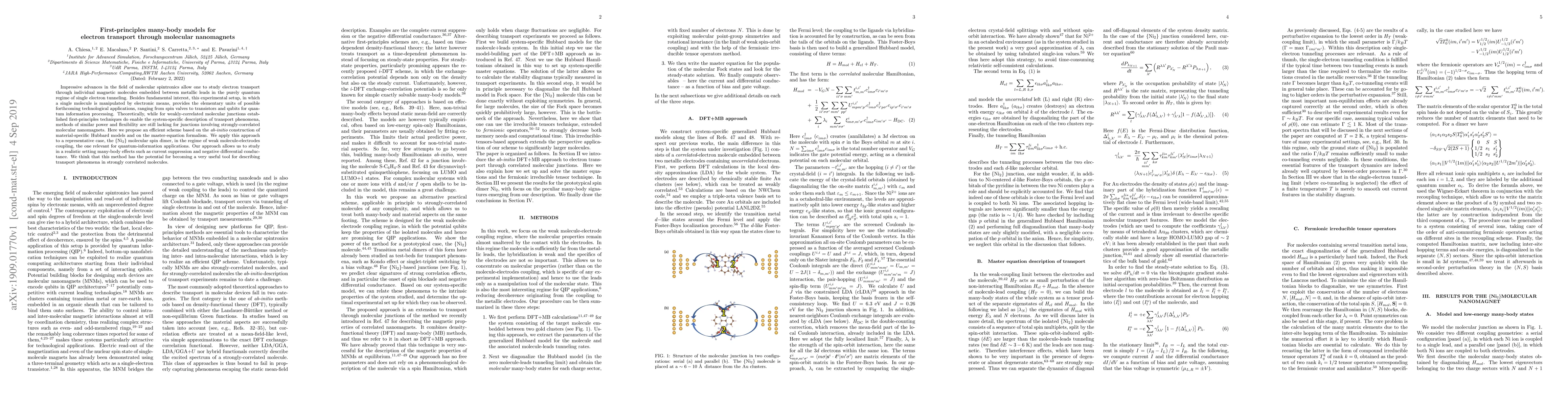 This paper proposes an efficient first-principles many-body model for electron transport through strongly correlated molecular nanomagnets, using ab initio Hubbard models and master-equation formalism. The method is demonstrated on the Ni$_2$ molecular spin dimer, revealing many-body effects like current suppression and negative differential conductance, and holds promise for future technological applications in spintronics and quantum information processing.