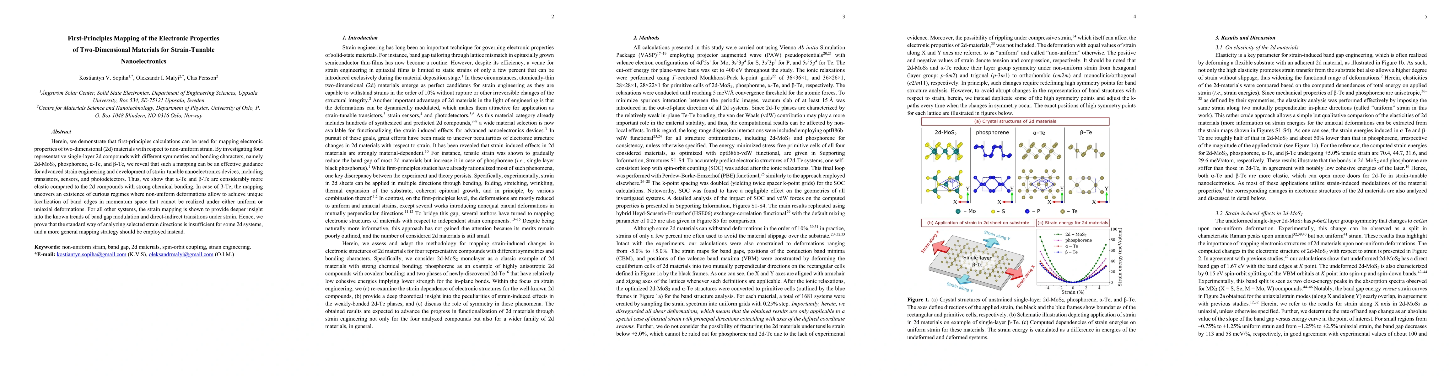 This study presents a comprehensive investigation of the electronic properties of single-layer 2D-MoS2, phosphorene, α-Te, and β-Te under strain using DFT calculations and molecular dynamics simulations.