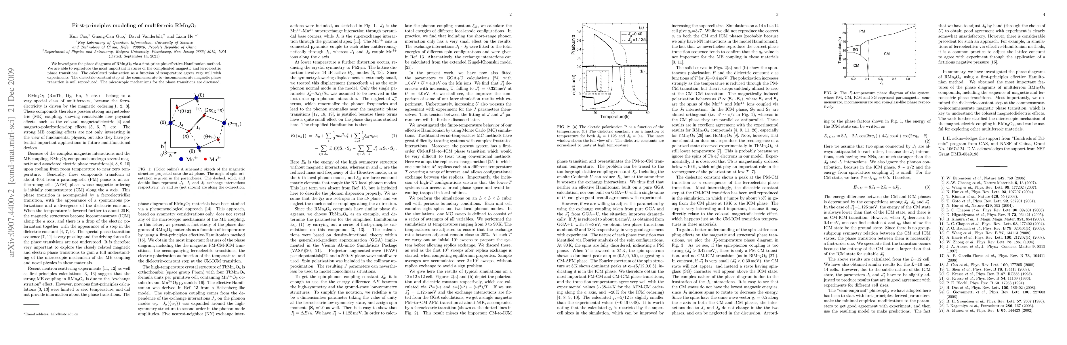 This paper uses first-principles modeling to analyze the phase diagrams of multferroic RMn$_2$O$_5$, successfully reproducing its magnetic and ferroelectric phase transitions and validating the dielectric-constant step at the magnetic phase transition against experimental data. The study elucidates the underlying microscopic mechanisms driving these transitions.