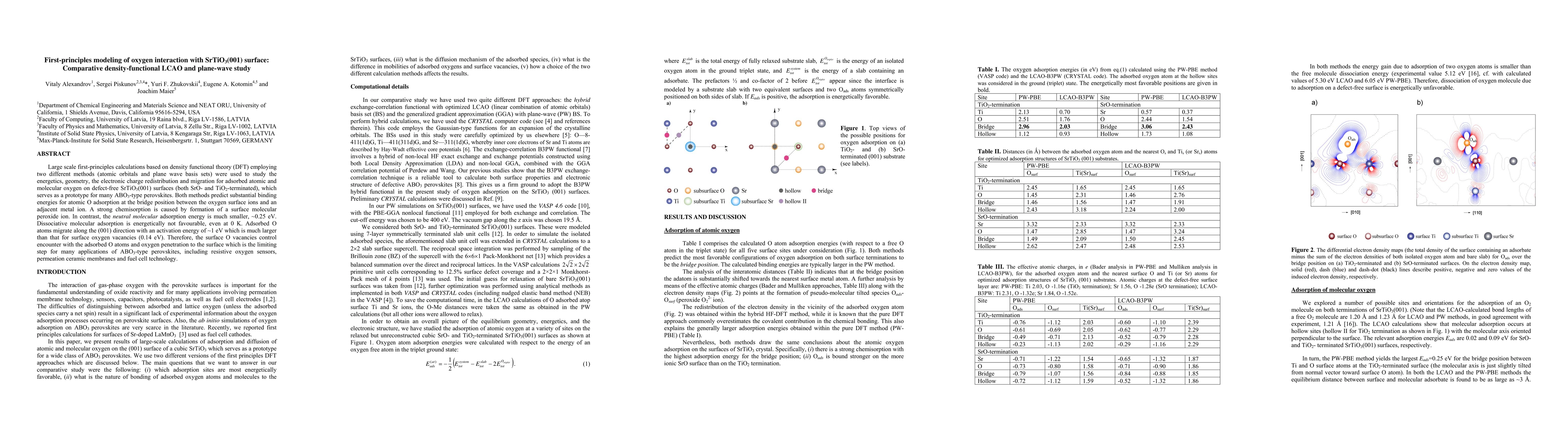 This study compares two DFT methods to analyze oxygen interaction with SrTiO3(001) surfaces, finding strong chemisorption for atomic oxygen and negligible adsorption for neutral molecular oxygen. Surface oxygen vacancies are crucial for oxygen migration and application in perovskite technologies.