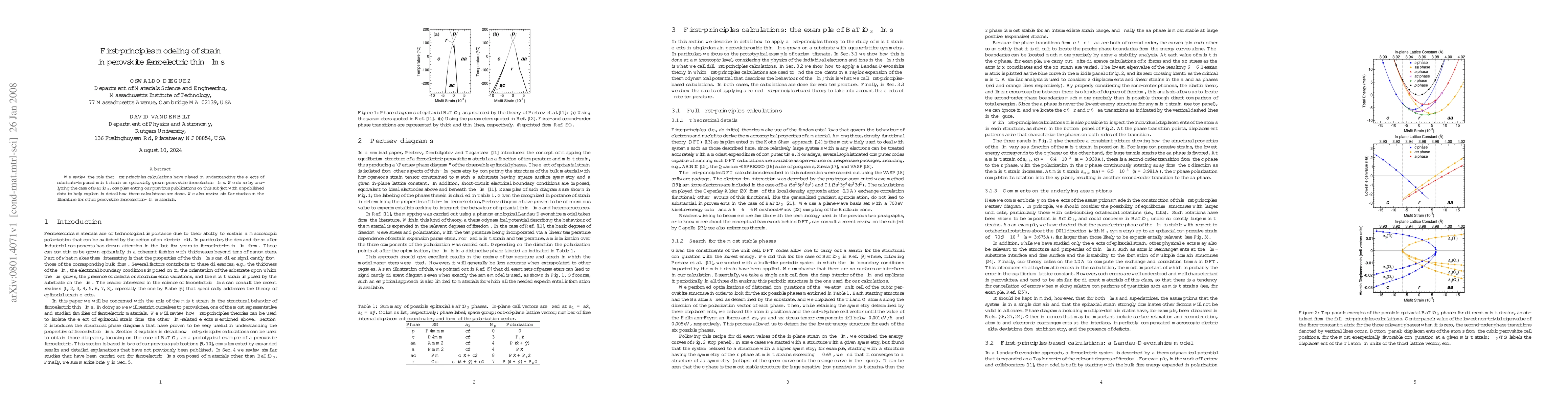 This paper reviews the application of first-principles calculations to understand substrate-induced strain effects on perovskite ferroelectric thin films, specifically BaTiO$_3$, and compares these findings with other similar studies in the literature. Unpublished data and detailed methodologies are included to enhance comprehension.