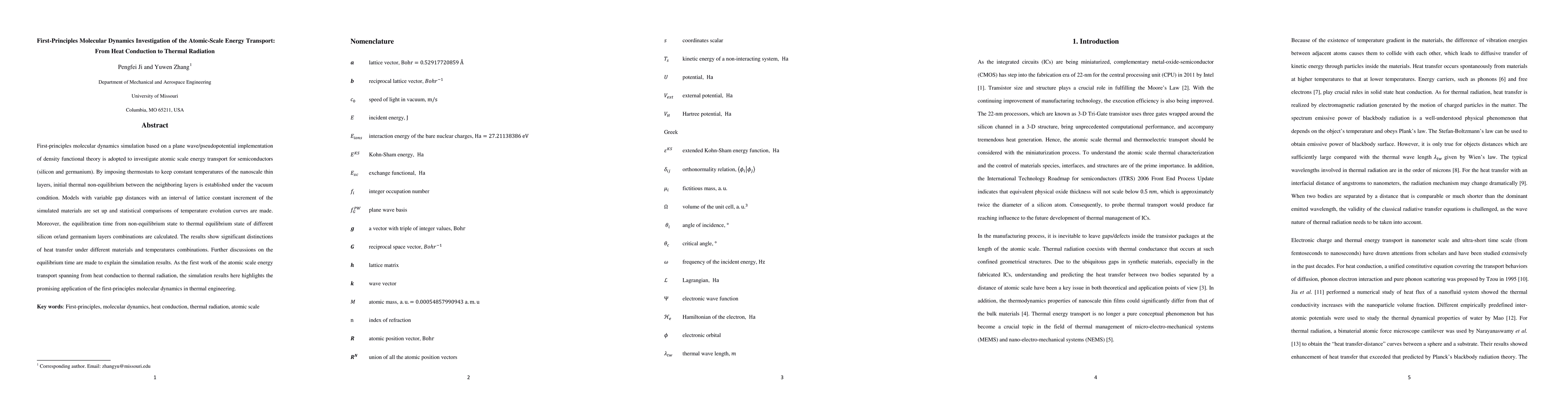 This paper uses first-principles molecular dynamics simulations to study atomic-scale energy transport in silicon and germanium semiconductors, revealing significant differences in heat conduction and thermal radiation under various temperature and material conditions. The findings underscore the potential of first-principles molecular dynamics in thermal engineering applications.