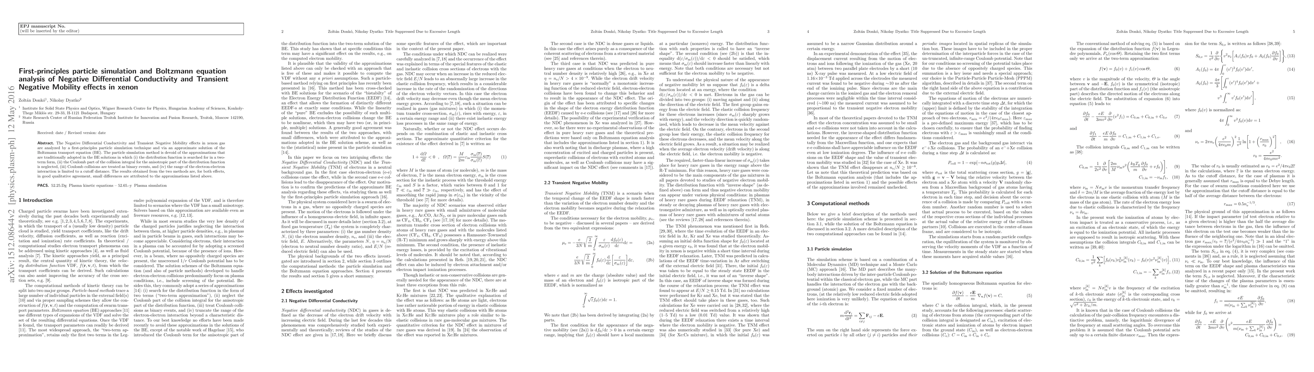 The Negative Differential Conductivity and Transient Negative Mobility effects in xenon gas are analyzed by a first-principles particle simulation technique and via an approximate solution of the Boltzmann transport equation (BE). The particle simulation method is devoid of the approximations that are traditionally adopted in the BE solutions in which (i) the distribution function is searched for in a two- term form, (ii) the Coulomb part of the collision integral for the anisotropic part of the distribution function is neglected, (iii) Coulomb collisions are treated as binary events, and (iv) the range of the electron-electron interaction is limited to a cutoff distance. The results obtained from the two methods are, for both effects, in good qualitative agreement, small differences are attributed to the approximations listed above.