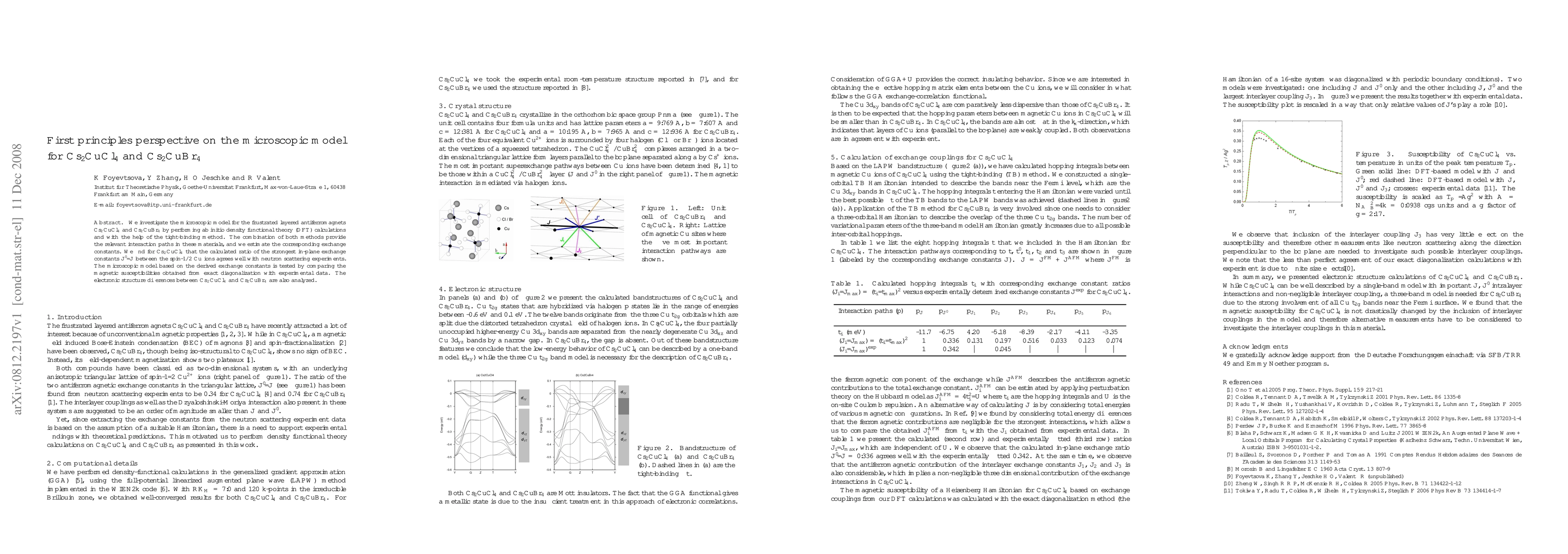 We investigate the microscopic model for the frustrated layered antiferromagnets Cs2CuCl4 and Cs2CuBr4 by performing ab initio density functional theory (DFT) calculations and with the help of the tight-binding method. The combination of both methods provide the relevant interaction paths in these materials, and we estimate the corresponding exchange constants. We find for Cs2CuCl4 that the calculated ratio of the strongest in-plane exchange constants J'/J between the spin-1/2 Cu ions agrees well with neutron scattering experiments. The microscopic model based on the derived exchange constants is tested by comparing the magnetic susceptibilities obtained from exact diagonalization with experimental data. The electronic structure differences between Cs2CuCl4 and Cs2CuBr4 are also analyzed.