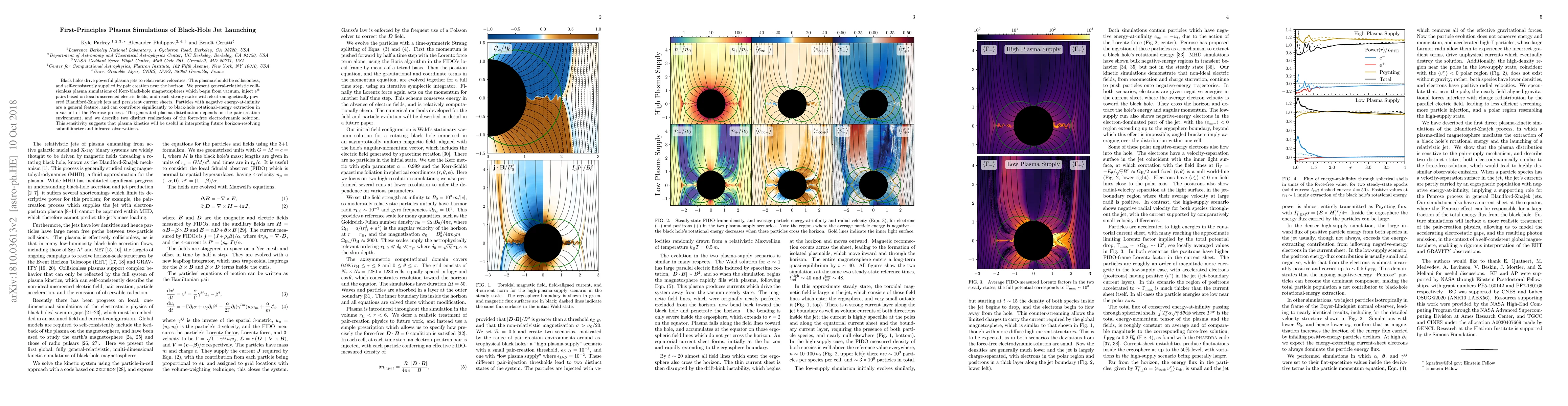 Researchers simulate plasma jets from black holes using general-relativistic simulations, finding that negative energy particles can contribute to rotational-energy extraction. The findings suggest plasma kinetics will be useful in interpreting future observations of black hole jets.