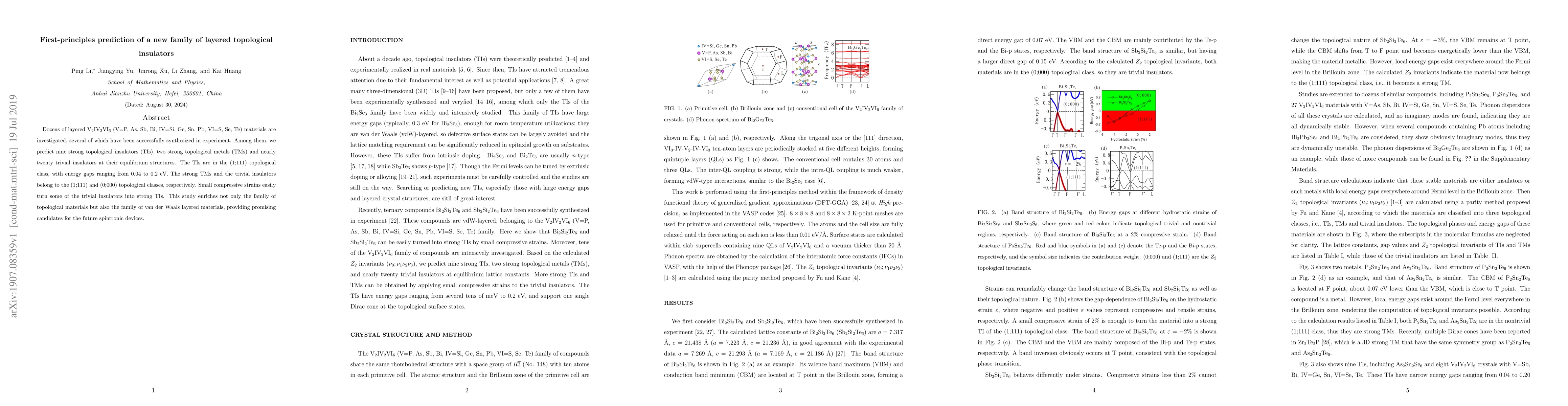 This research predicts the existence of new layered topological insulators within the V$_2$IV$_2$VI$_6$ family, identifying nine strong topological insulators and two strong topological metals among synthesized materials. The study also highlights the potential for strain to convert trivial insulators into topological insulators, expanding the range of materials for future spintronic applications.