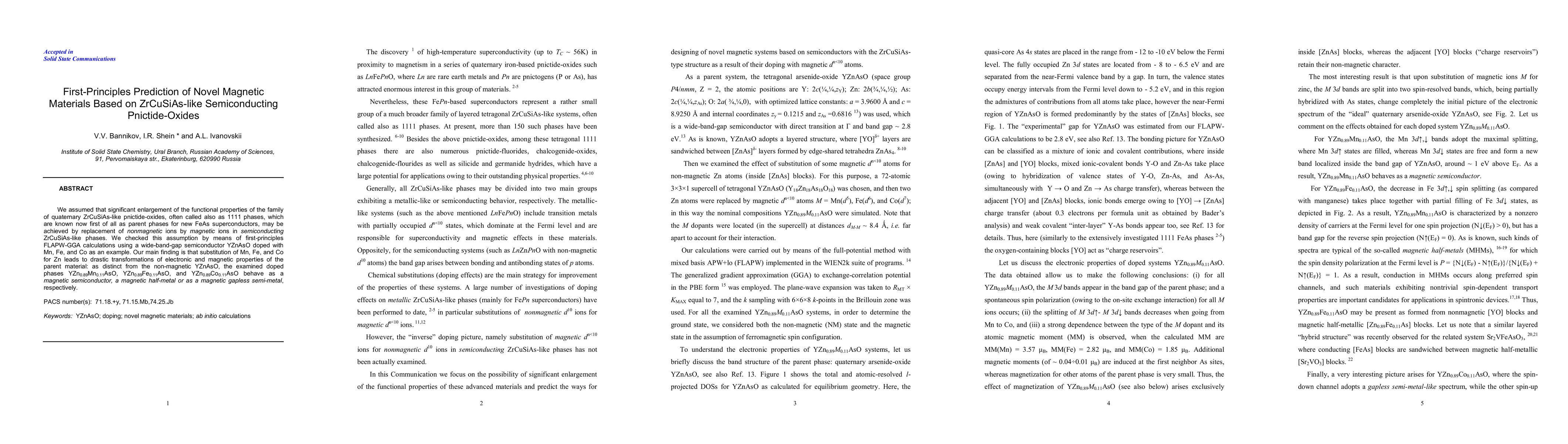 This paper explores the enhancement of functional properties in ZrCuSiAs-like pnictide-oxides through the substitution of nonmagnetic ions with magnetic ones. The study finds that doping YZnAsO with Mn, Fe, and Co results in significant changes in electronic and magnetic properties, transforming the material into a magnetic semiconductor, magnetic half-metal, or magnetic gapless semi-metal.