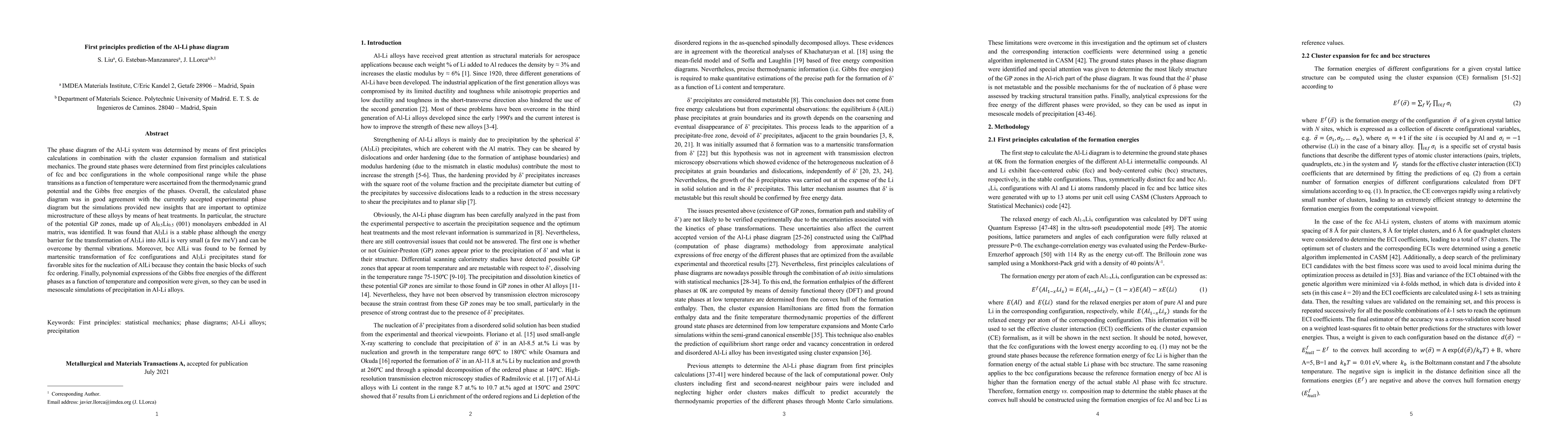 The Al-Li phase diagram was predicted using first principles calculations and cluster expansion, revealing stable phases and martensitic transformations. The study identified potential GP zones and highlighted the small energy barrier for phase transformations, providing insights for optimizing alloy microstructures.
