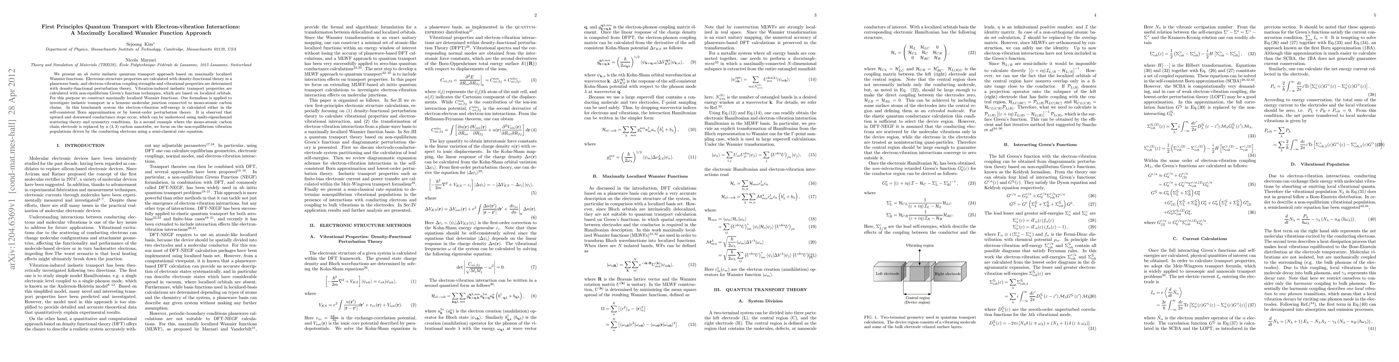 This paper introduces an ab initio quantum transport method for systems with electron-vibration interactions, employing maximally localized Wannier functions and density-functional theory. It applies this approach to study inelastic transport in benzene molecular junctions and carbon nanotube systems, revealing conductance steps and non-equilibrium vibration populations.