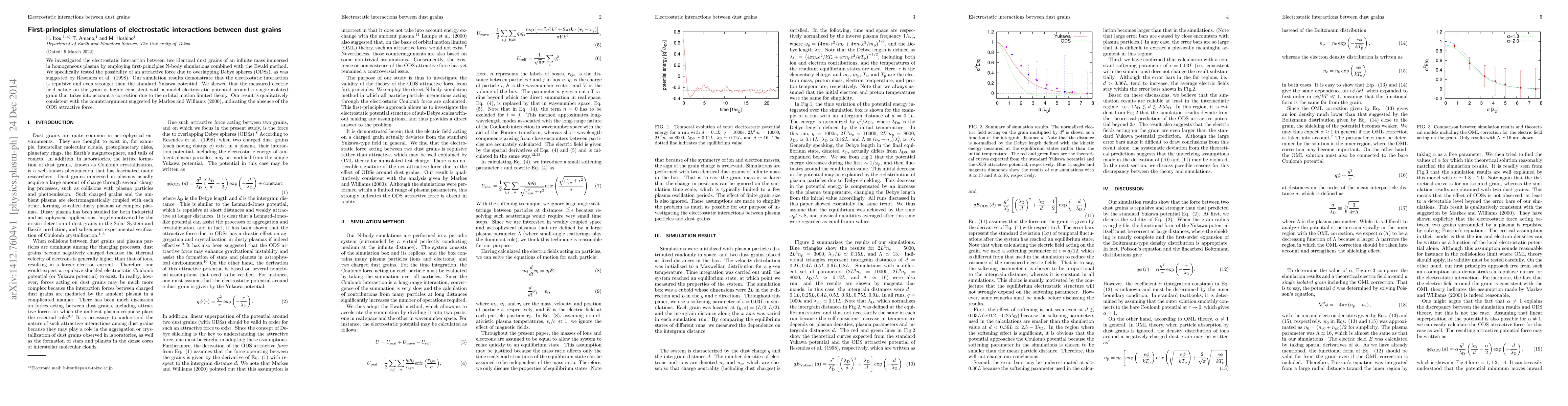 We investigated the electrostatic interaction between two identical dust grains of an infinite mass immersed in homogeneous plasma by employing first-principles N-body simulations combined with the Ewald method. We specifically tested the possibility of an attractive force due to overlapping Debye spheres (ODSs), as was suggested by Resendes et al. (1998). Our simulation results demonstrate that the electrostatic interaction is repulsive and even stronger than the standard Yukawa potential. We showed that the measured electric field acting on the grain is highly consistent with a model electrostatic potential around a single isolated grain that takes into account a correction due to the orbital motion limited theory. Our result is qualitatively consistent with the counterargument suggested by Markes and Williams (2000), indicating the absence of the ODS attractive force.