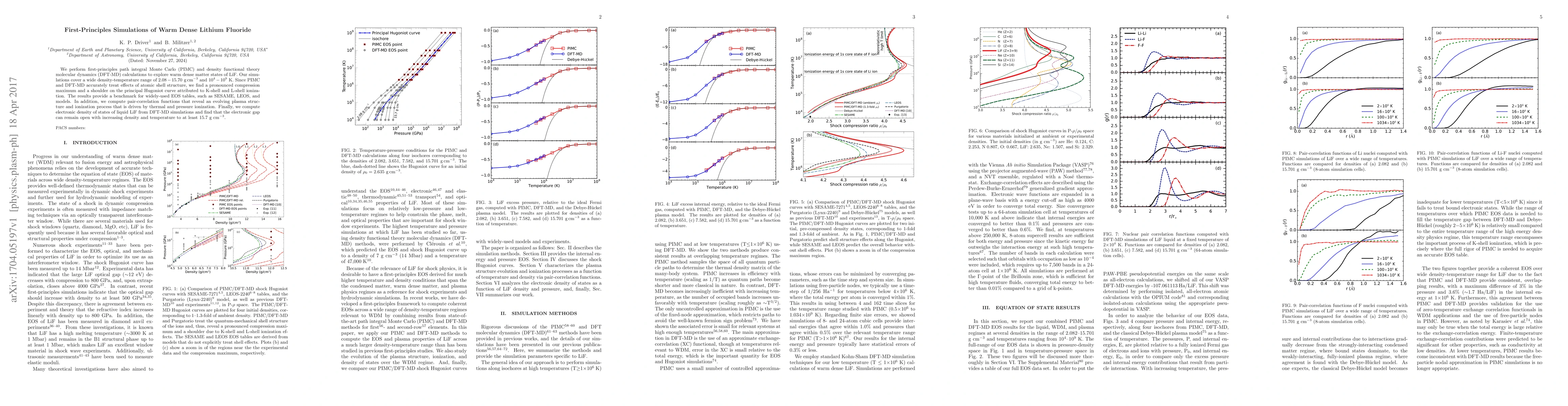 This paper uses first-principles simulations to study the properties of warm dense lithium fluoride (LiF), revealing a compression maximum and shoulder on the Hugoniot curve due to K-shell and L-shell ionization. The findings provide benchmarks for existing EOS tables and show that the electronic gap remains open up to high densities and temperatures.