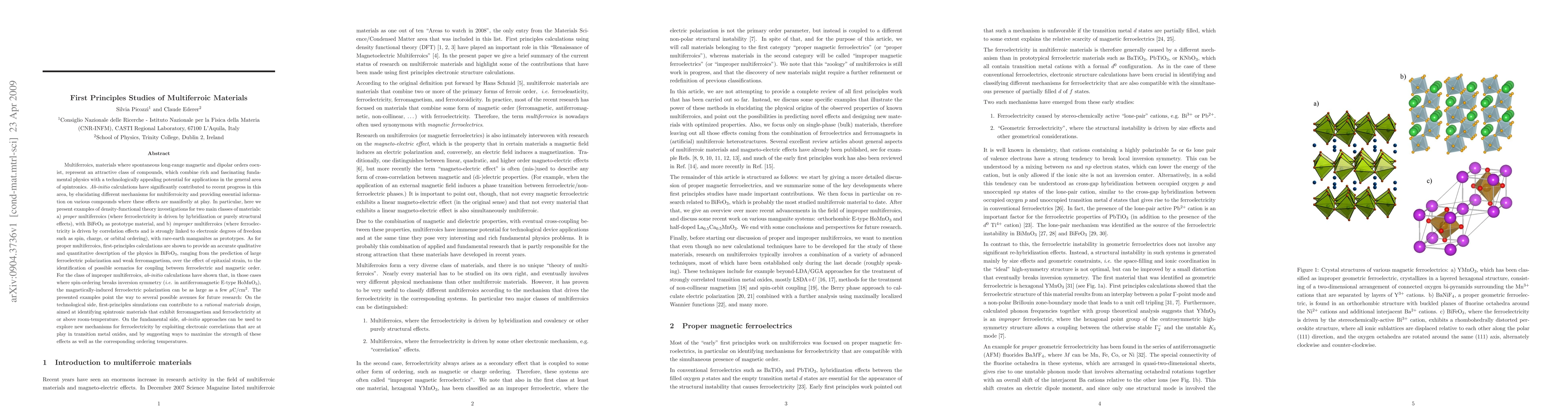 Researchers investigate multiferroic materials, which combine magnetic and electric properties, using ab-initio calculations. They explore two types: proper multiferroics with BiFeO3 and improper multiferroics with rare-earth manganites.