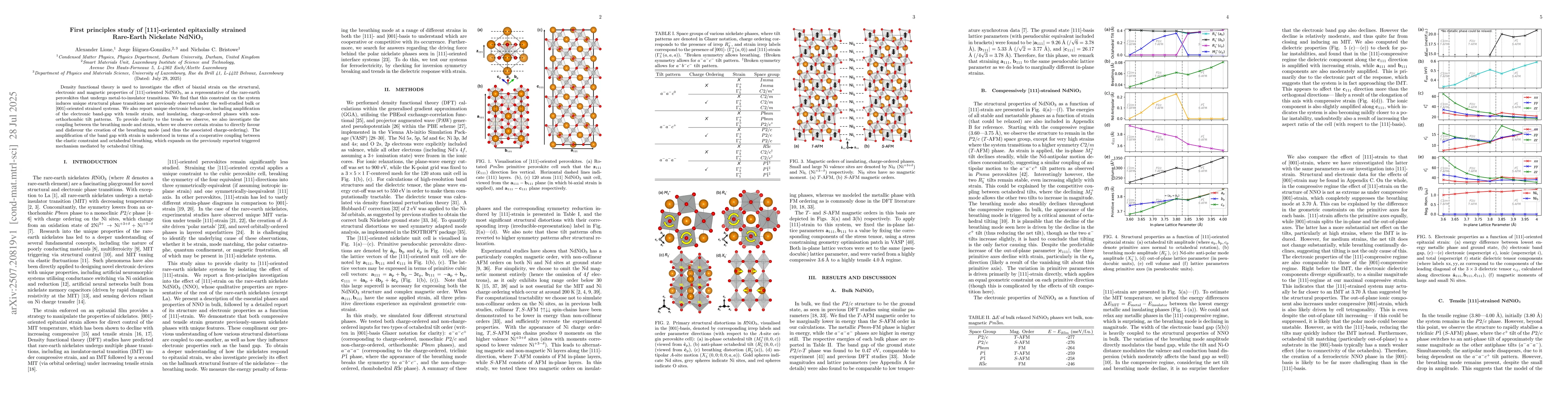 The paper presents a first-principles understanding of strain-induced structural, electronic, and magnetic changes in [111]-oriented NdNiO3, highlighting the role of octahedral breathing and tilting in the metal-to-insulator transition.
