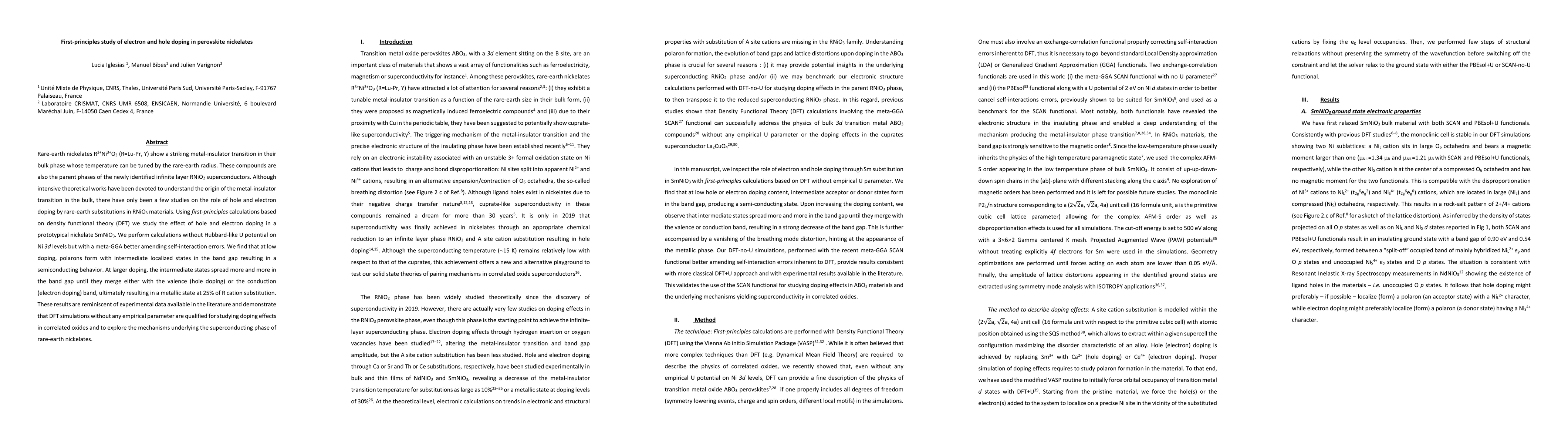 Researchers used first-principles calculations to study how electron and hole doping affects a nickelate material, finding that it becomes metallic at 25% of rare-earth substitution, consistent with experimental data.