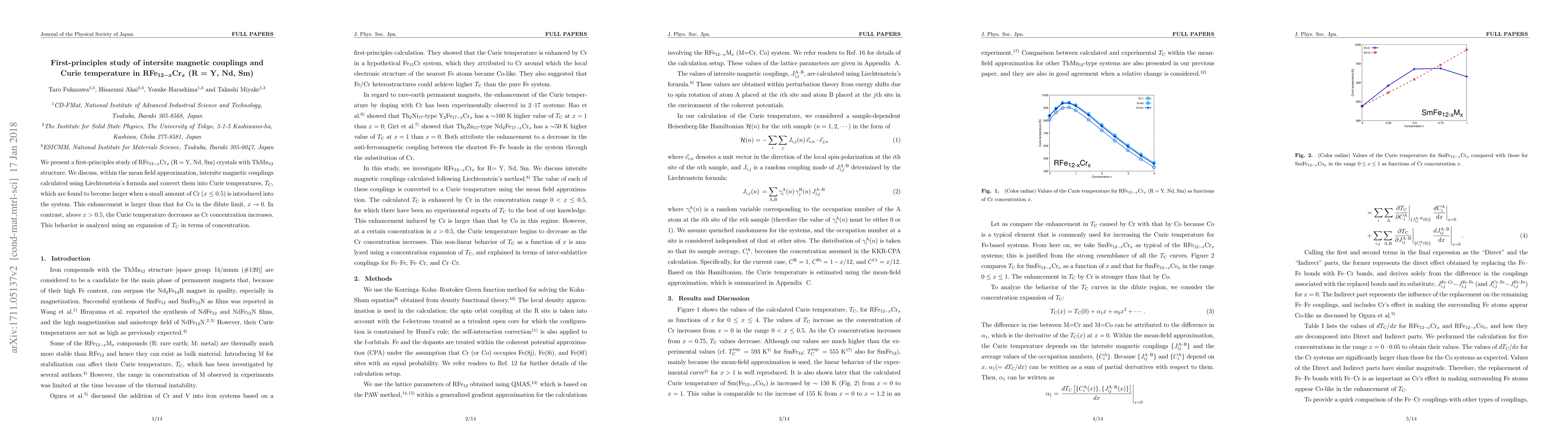 We present a first-principles study of RFe$_{12-x}$Cr$_{x}$ (R = Y, Nd, Sm) crystals with ThMn$_{12}$ structure. We discuss, within the mean field approximation, intersite magnetic couplings calculated using Liechtenstein's formula and convert them into Curie temperatures, $T_{\rm C}$, which are found to become larger when a small amount of Cr ($x \leq 0.5$) is introduced into the system. This enhancement is larger than that for Co in the dilute limit, $x \rightarrow 0$. In contrast, above $x > 0.5$, the Curie temperature decreases as Cr concentration increases. This behavior is analyzed using an expansion of $T_{\rm C}$ in terms of concentration.