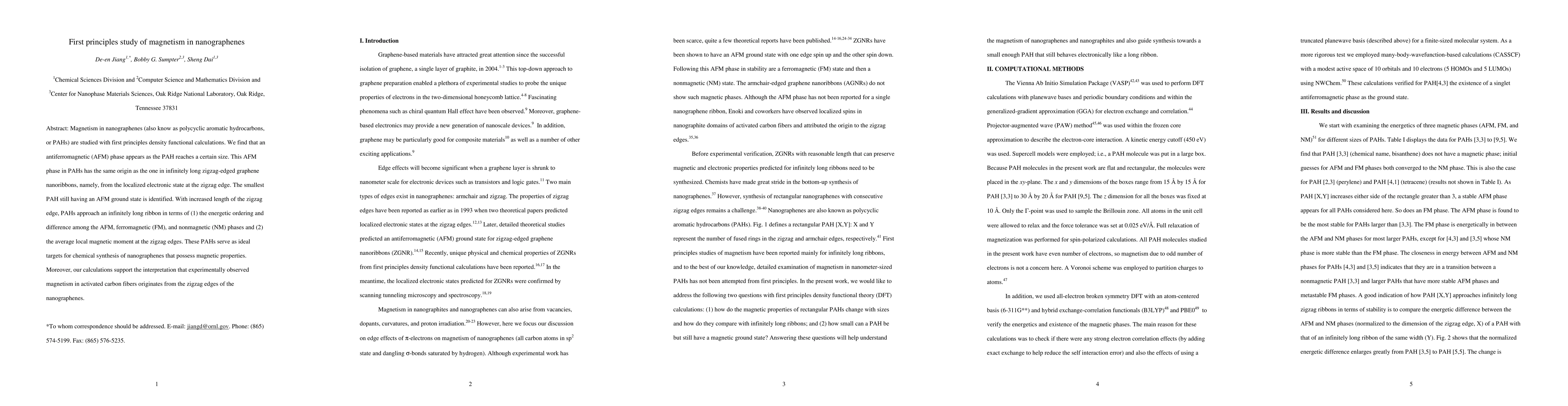 This study uses first principles calculations to investigate magnetism in nanographenes, finding that an antiferromagnetic phase emerges as the size increases, driven by localized electronic states at zigzag edges. The smallest nanographene with an AFM ground state is identified, and longer zigzag edges lead to behavior similar to infinitely long zigzag-edged graphene nanoribbons.