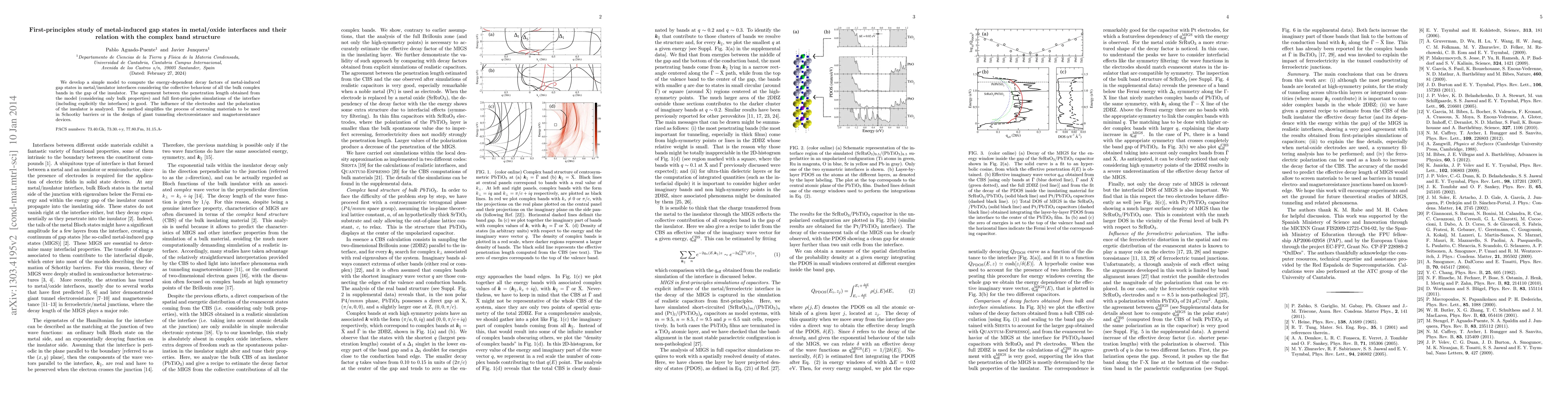 We develop a simple model to compute the energy-dependent decay factors of metal-induced gap states in metal/insulator interfaces considering the collective behaviour of all the bulk complex bands in the gap of the insulator. The agreement between the penetration length obtained from the model (considering only bulk properties) and full first-principles simulations of the interface (including explicitly the interfaces) is good. The influence of the electrodes and the polarization of the insulator is analyzed. The method simplifies the process of screening materials to be used in Schootky barriers or in the design of giant tunneling electroresistance and magnetoresistance devices.