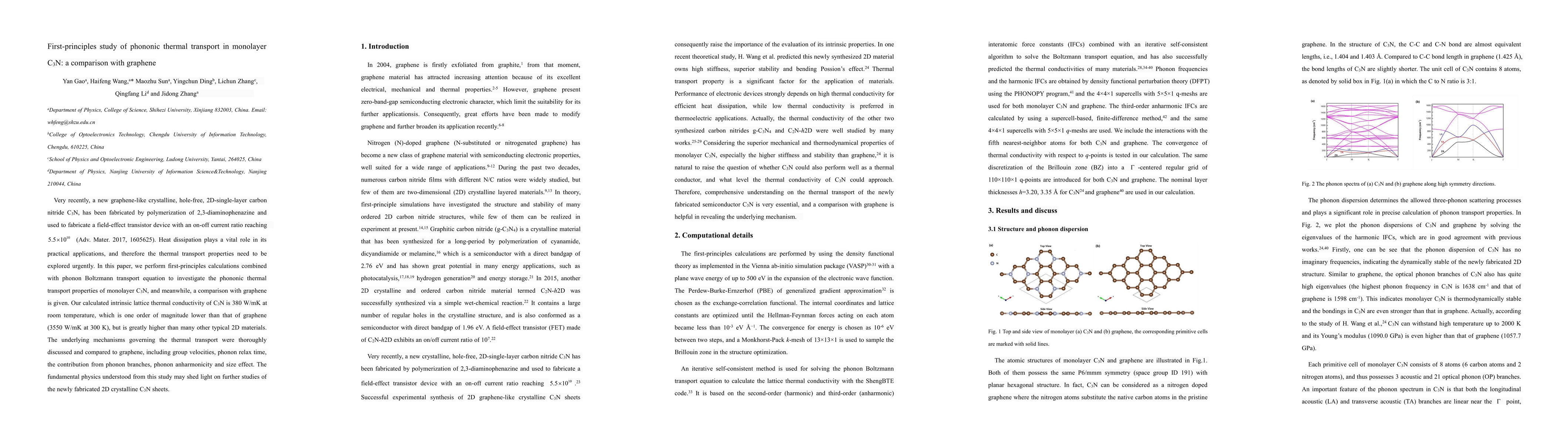 This study uses first-principles calculations to investigate the phononic thermal transport properties of monolayer C3N, comparing them with graphene. The intrinsic lattice thermal conductivity of C3N at room temperature is found to be significantly lower than graphene's but higher than many other 2D materials, providing insights into the thermal management of this new 2D crystalline material.