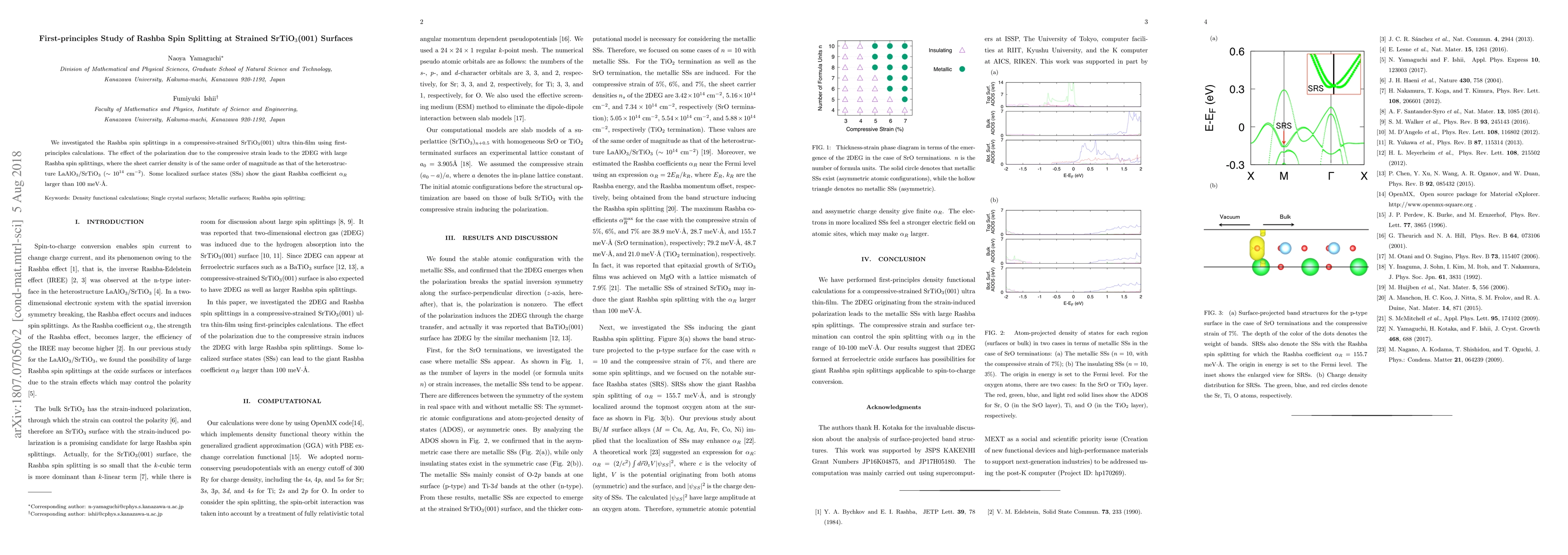This study uses first-principles calculations to explore Rashba spin splitting in compressively strained SrTiO$_3$(001) ultra thin-films, revealing significant spin splitting due to polarization effects and the presence of localized surface states with exceptionally large Rashba coefficients. The sheet carrier density achieved is comparable to that of LaAlO$_3$/SrTiO$_3$ heterostructures.