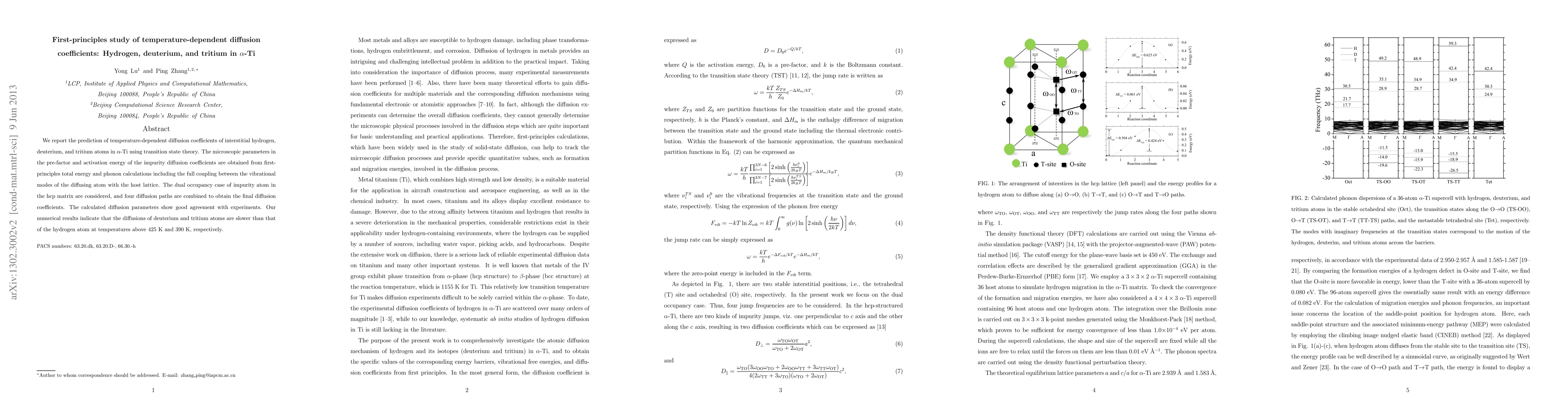 This study predicts the temperature-dependent diffusion coefficients of hydrogen, deuterium, and tritium in α-Ti using first-principles calculations and transition state theory, revealing that deuterium and tritium diffuse slower than hydrogen above 425 K and 390 K, respectively. The results align well with experimental data.