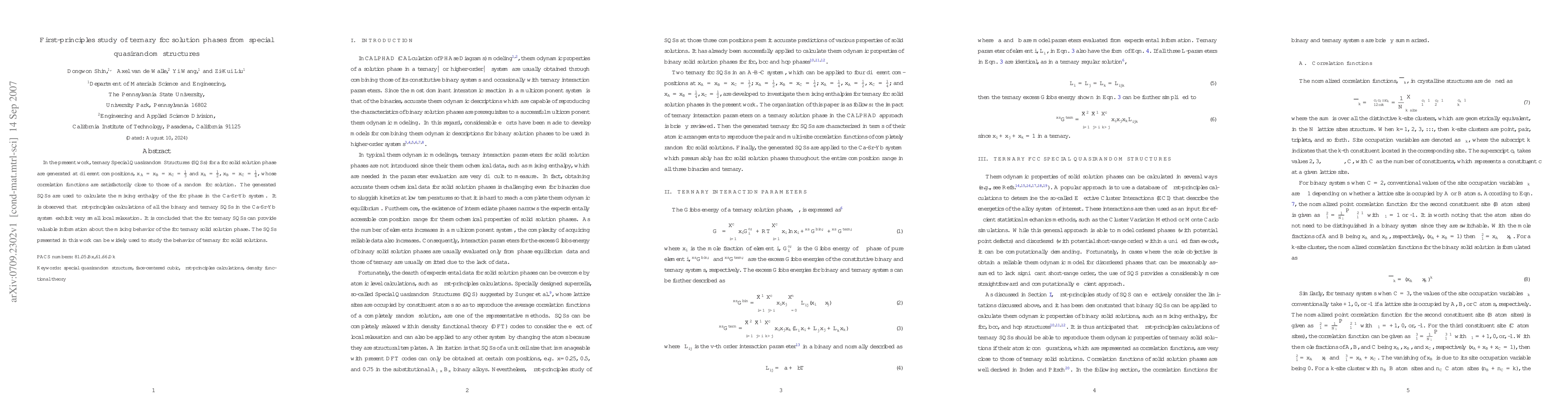 This paper generates ternary Special Quasirandom Structures (SQSs) for fcc solid solution phases in the Ca-Sr-Yb system and calculates their mixing enthalpy using first-principles methods. The results show minimal local relaxation and suggest that these SQSs provide valuable insights into the mixing behavior of ternary fcc solid solutions.