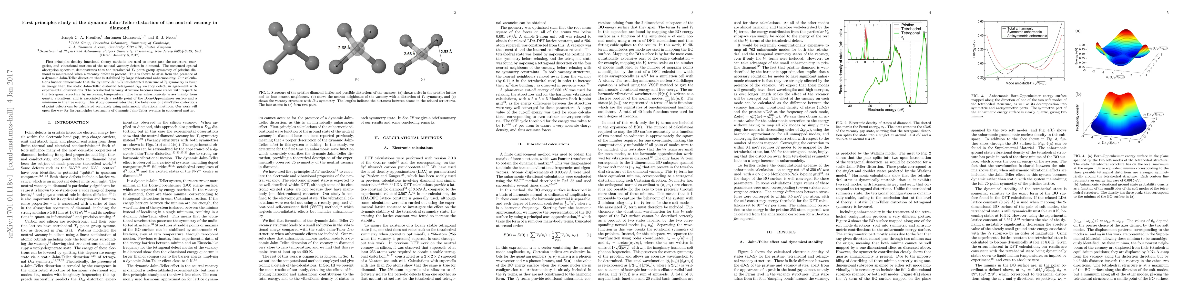 This study utilizes first-principles density functional theory to examine the dynamic Jahn-Teller distortion in neutral vacancy defects in diamond, showing that the tetrahedral symmetry is maintained due to an anharmonically stabilized dynamic Jahn-Teller distortion. The tetrahedral structure is more stable than the static tetragonal distortion, especially at higher temperatures.