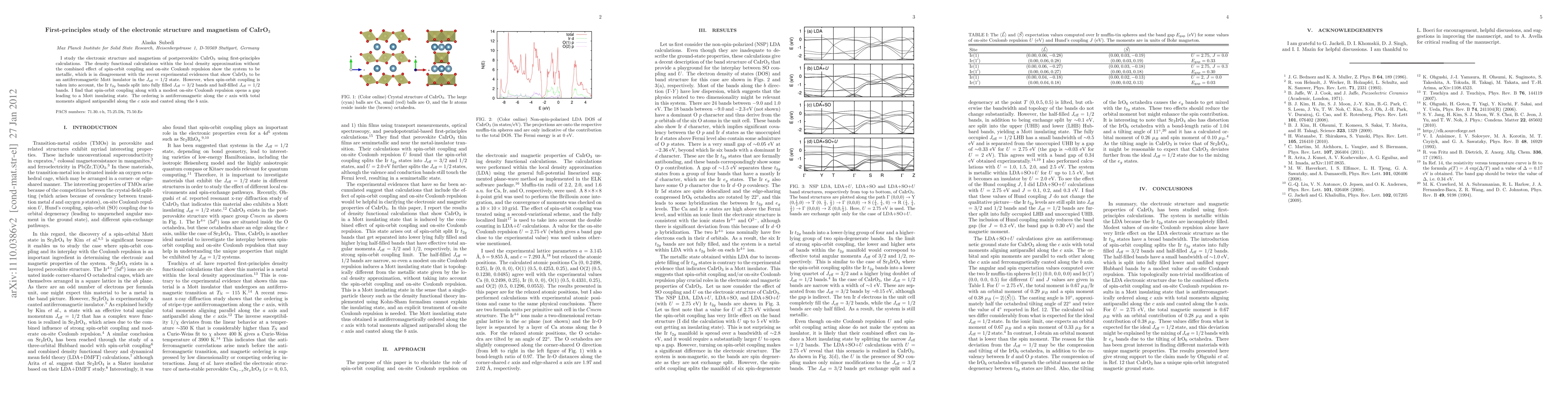 This study uses first-principles calculations to investigate the electronic structure and magnetism of CaIrO$_3$, finding it to be metallic without spin-orbit coupling. Inclusion of spin-orbit coupling and on-site Coulomb repulsion reveals a Mott insulating state with antiferromagnetic ordering.