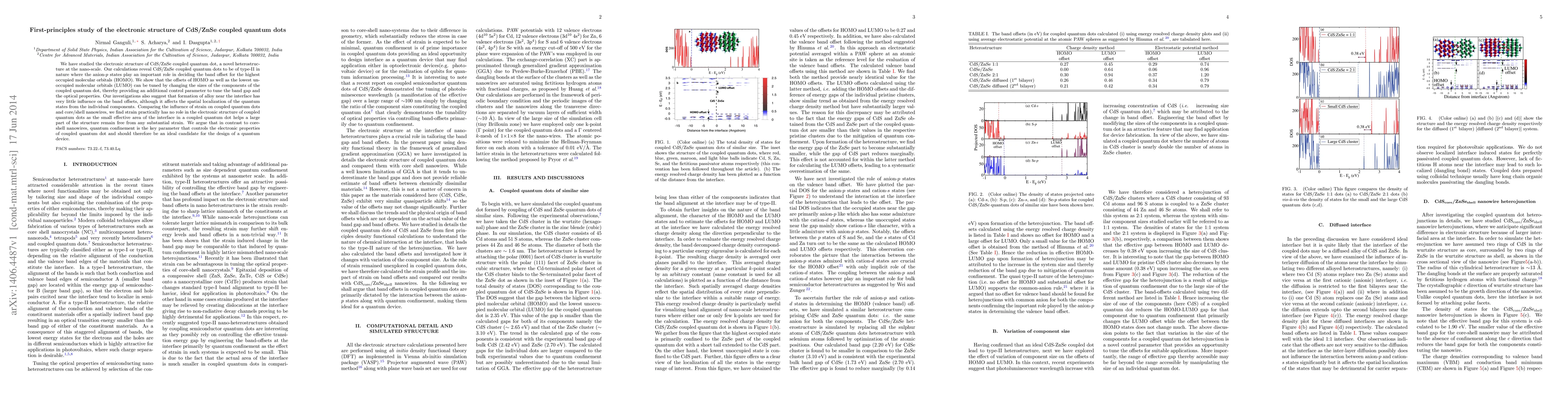 This study investigates the electronic structure of CdS/ZnSe coupled quantum dots, finding them to be type-II with tunable band offsets and band gaps influenced by quantum dot sizes. Strain has minimal impact on their electronic properties due to reduced interface area.