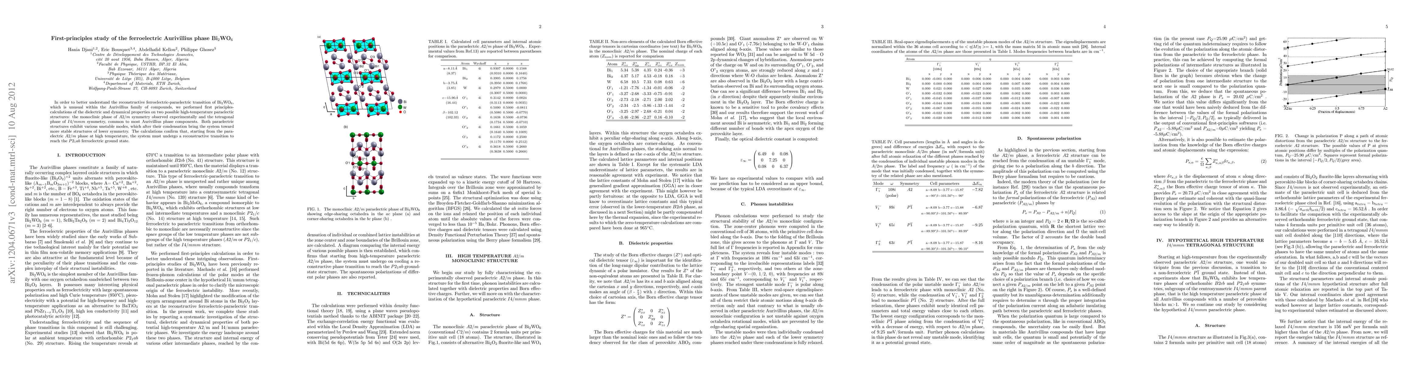 This study uses first-principles calculations to investigate the ferroelectric-paraelectric transition in Bi2WO6, revealing that the system undergoes a reconstructive transition from the high-temperature paraelectric monoclinic A2/m phase to the ferroelectric P2_1ab ground state. The analysis identifies unstable modes in both paraelectric phases that lead to lower symmetry structures.