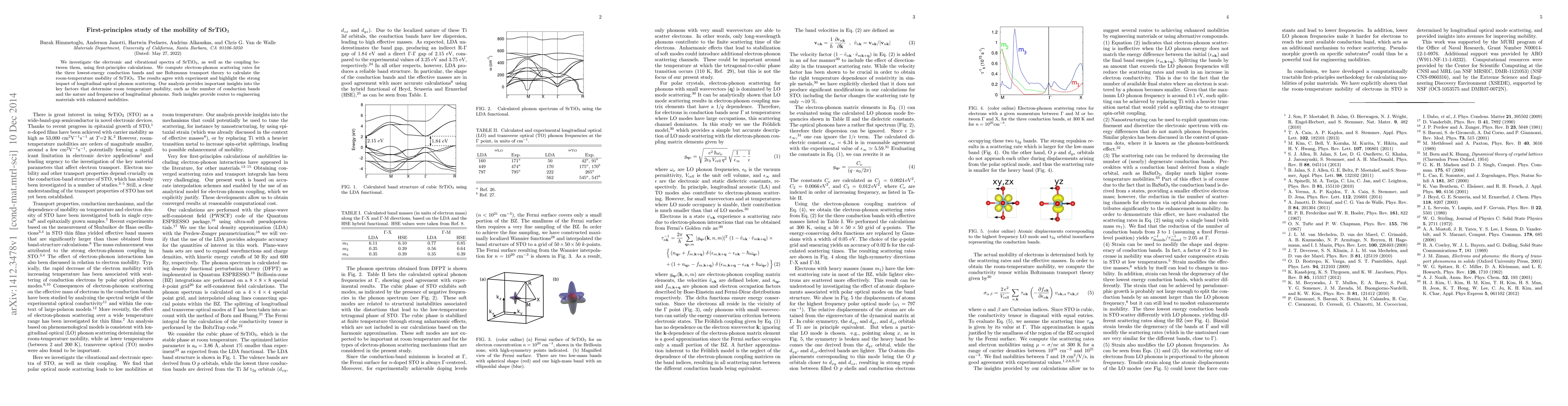 This study uses first-principles calculations to analyze the electronic and vibrational spectra of SrTiO$_3$, revealing the significant role of electron-phonon coupling, particularly longitudinal optical phonon scattering, in determining room-temperature mobility. The findings offer insights for engineering materials with improved mobility.