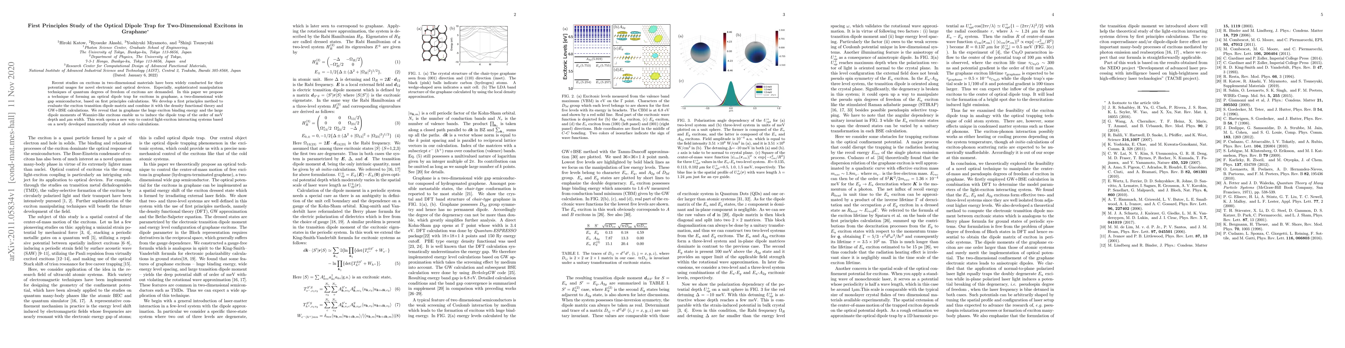 This paper proposes a first principles study to create an optical dipole trap for excitons in graphane, a two-dimensional semiconductor, using advanced calculations. The study reveals that graphane's large exciton binding energy and dipole moments allow for a dipole trap with a depth of meV and width of $\mu$m, offering a new method for controlling light-exciton interactions.